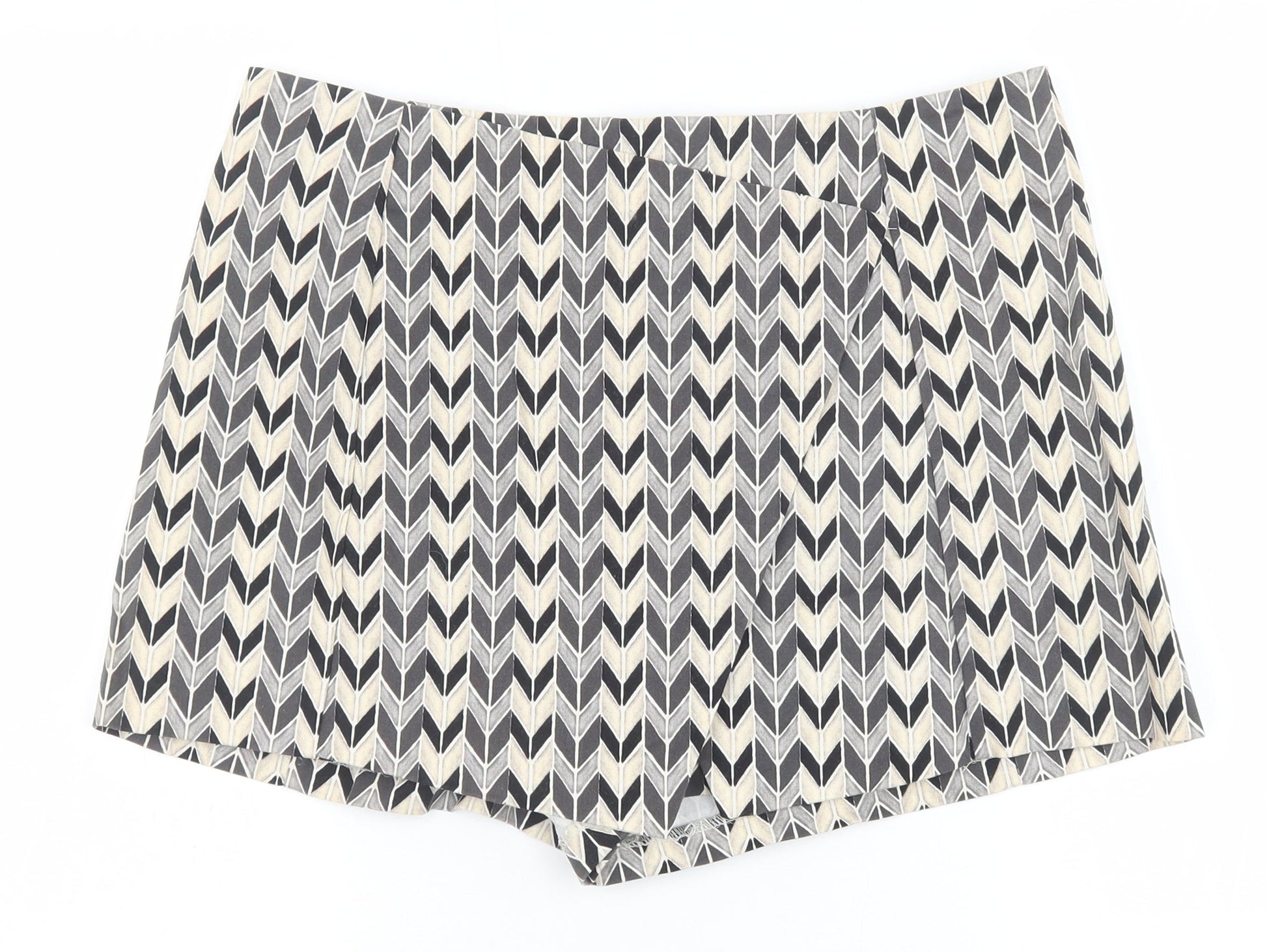 Topshop Womens Black Geometric Polyester Basic Shorts Size 14 Regular Zip
