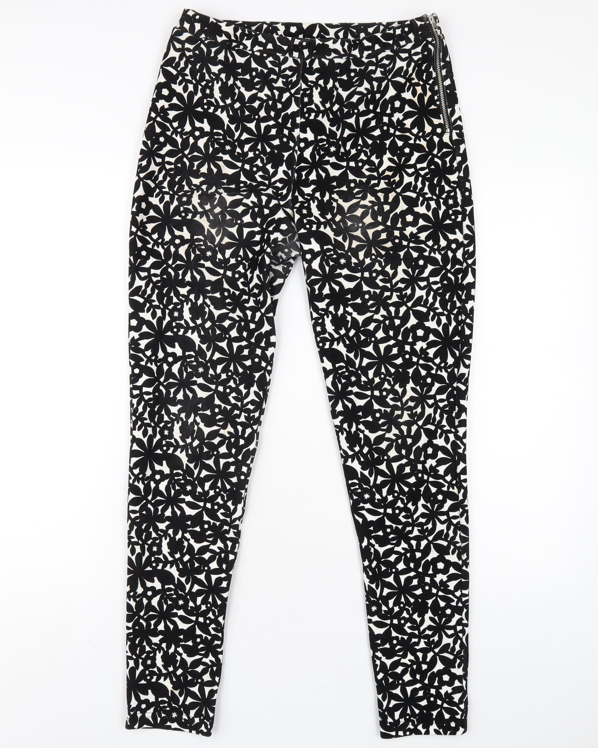 Topshop Womens Black Geometric Polyester Carrot Trousers Size 12 L29 in Regular Zip