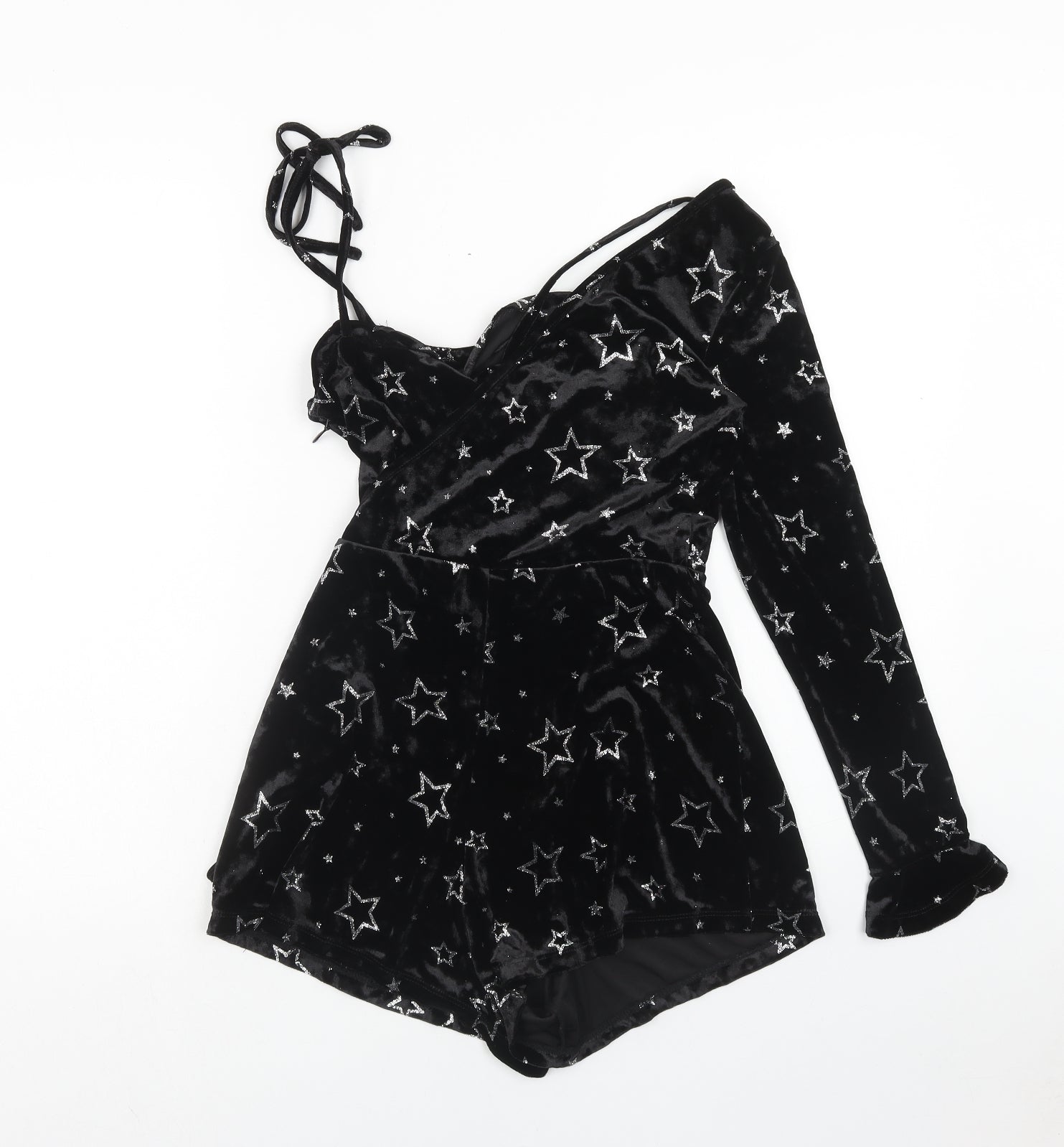 Topshop Womens Black Geometric Polyester Playsuit One-Piece Size 6 Zip - Star