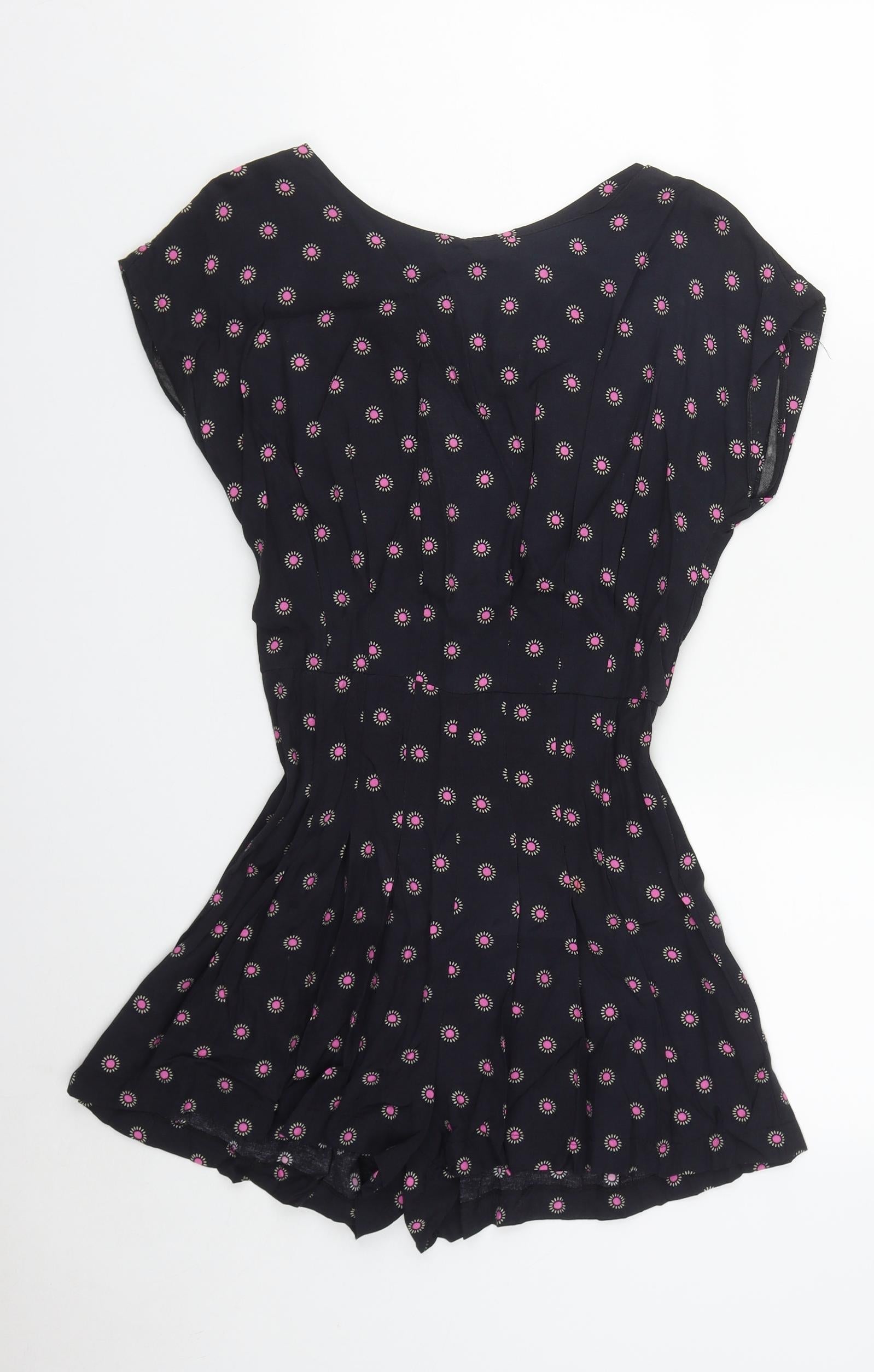 Topshop Womens Black Geometric Viscose Playsuit One-Piece Size 6 Zip