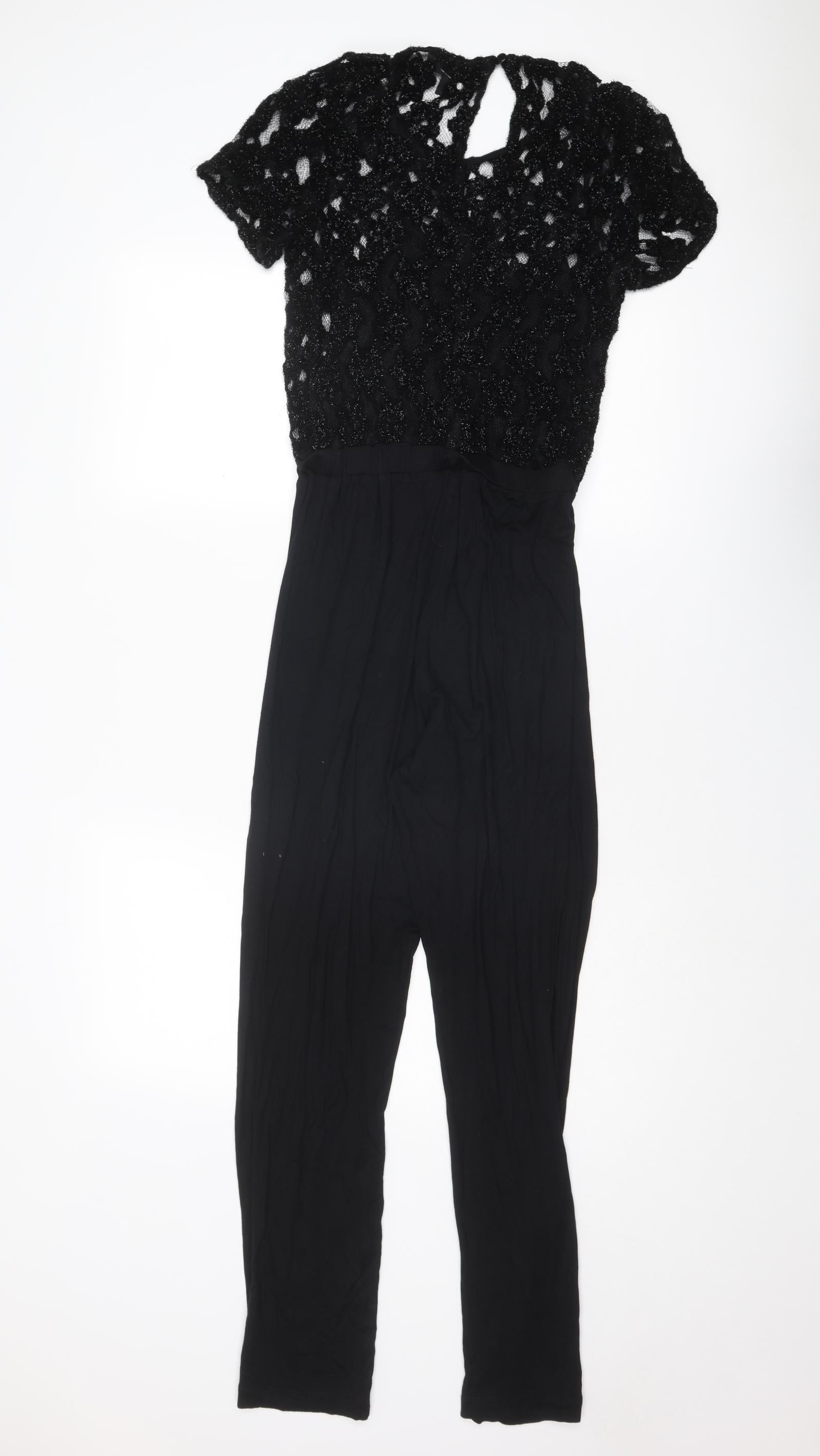 Topshop Womens Black Polyester Jumpsuit One-Piece Size 8 L29 in Button