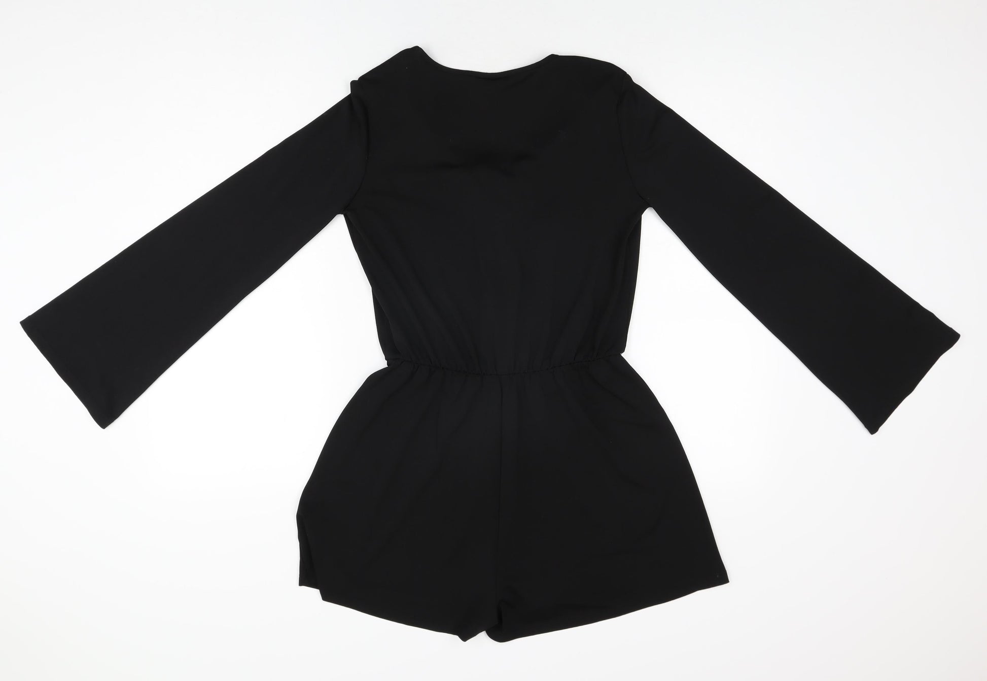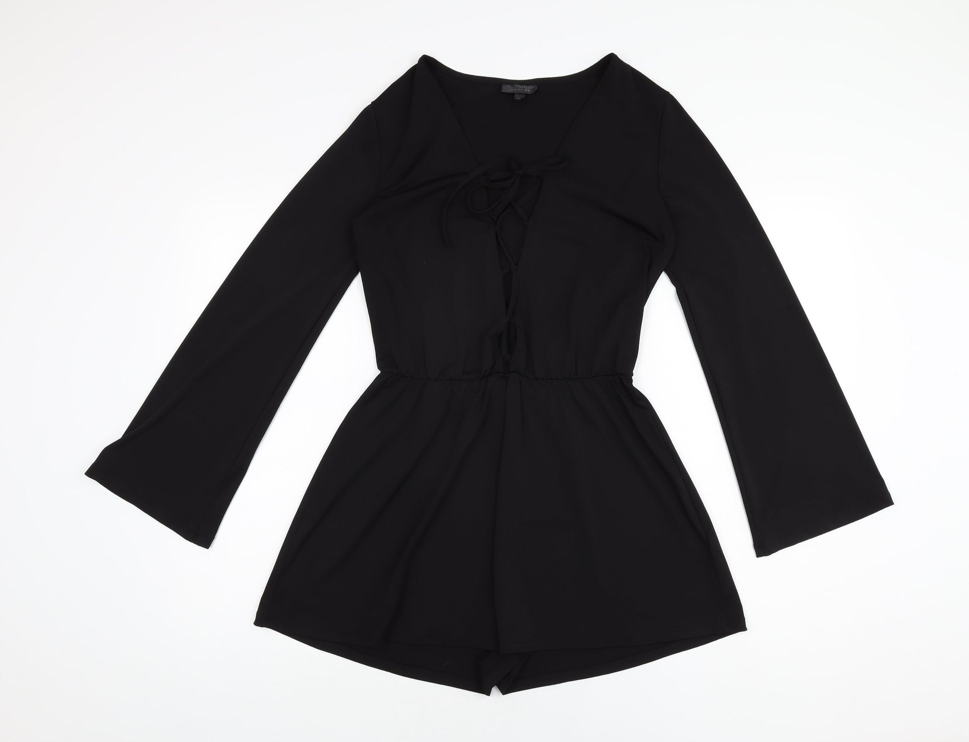 Topshop Womens Black Polyester Playsuit One-Piece Size 10 Tie