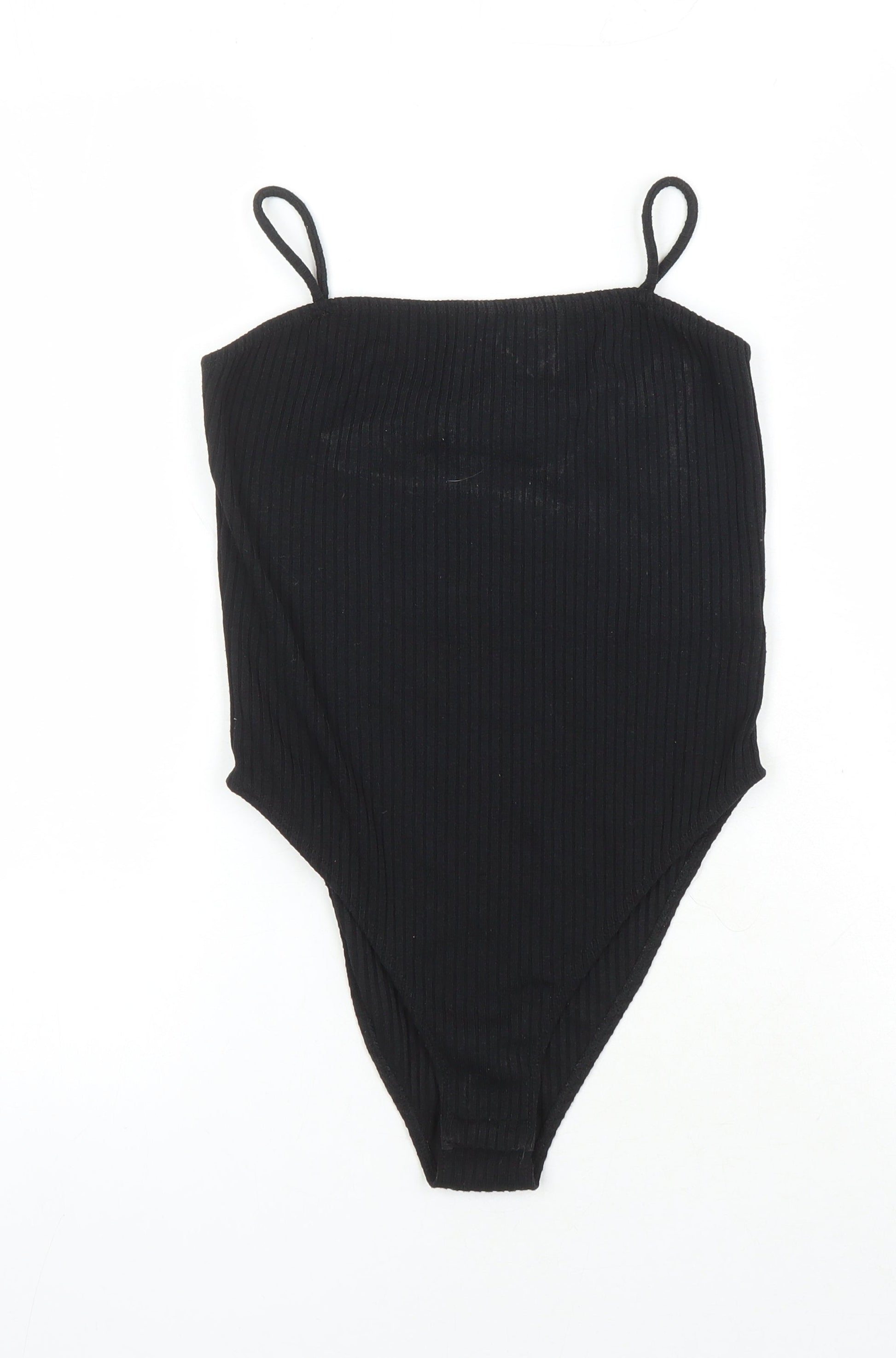 Topshop Womens Black Viscose Bodysuit One-Piece Size 10 Snap