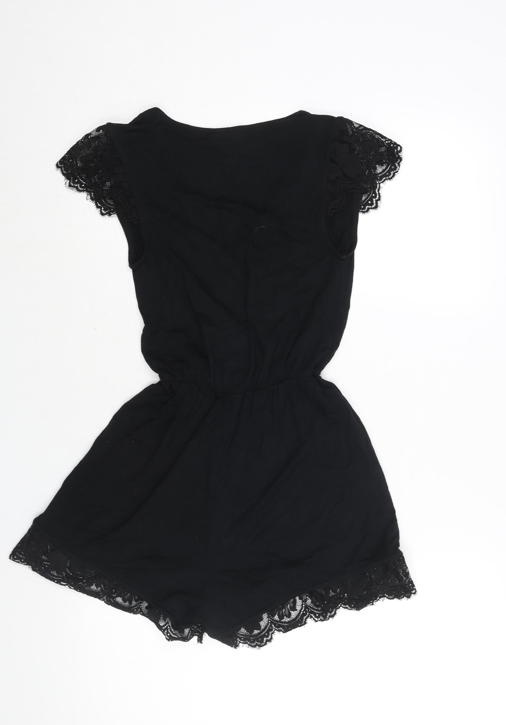 Topshop Womens Black Viscose Playsuit One-Piece Size 6 Pullover - Lace Trim