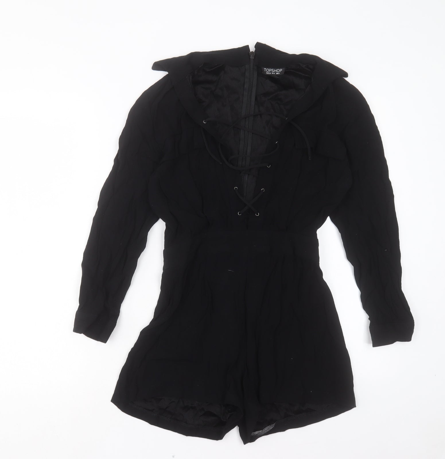 Topshop Womens Black Viscose Playsuit One-Piece Size 8 Zip