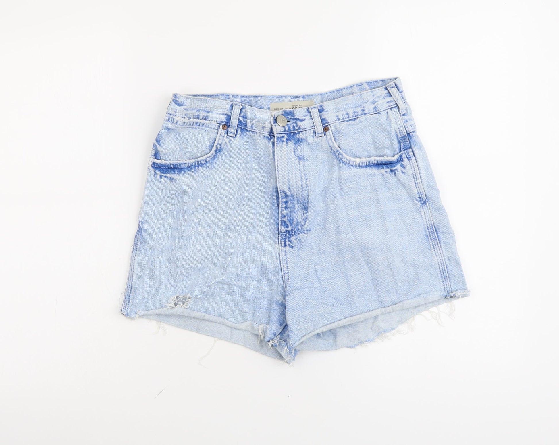 Topshop Womens Blue Cotton Cut-Off Shorts Size M L4 in Regular Button - Distressed