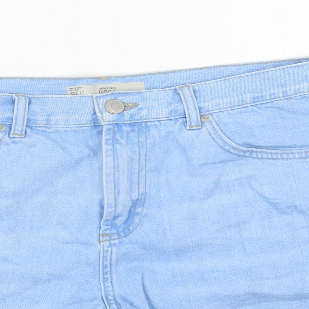Topshop Womens Blue Cotton Hot Pants Shorts Size 12 L5 in Regular Button