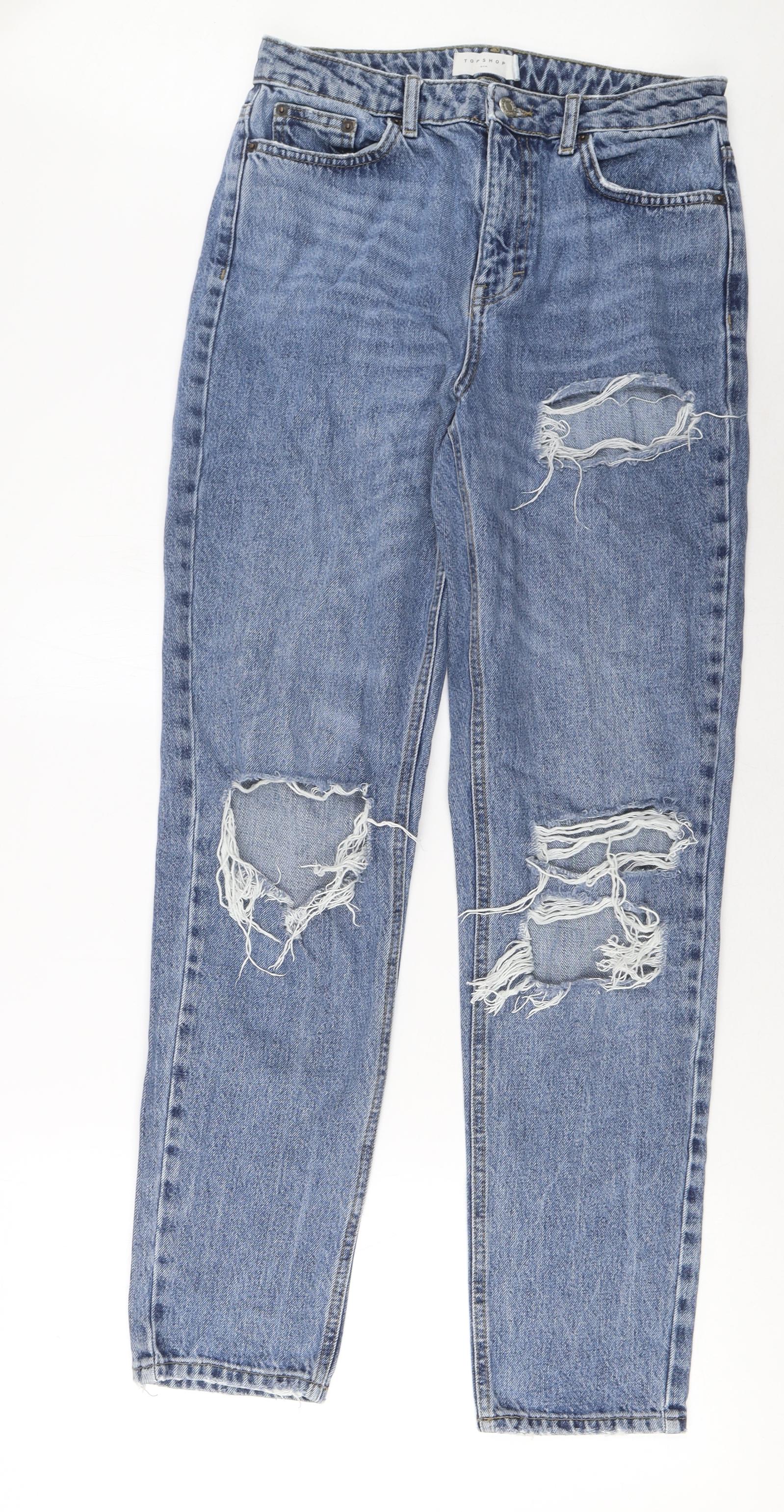 Topshop Womens Blue Cotton Mom Jeans Size 28 in L34 in Regular Zip - Pockets
