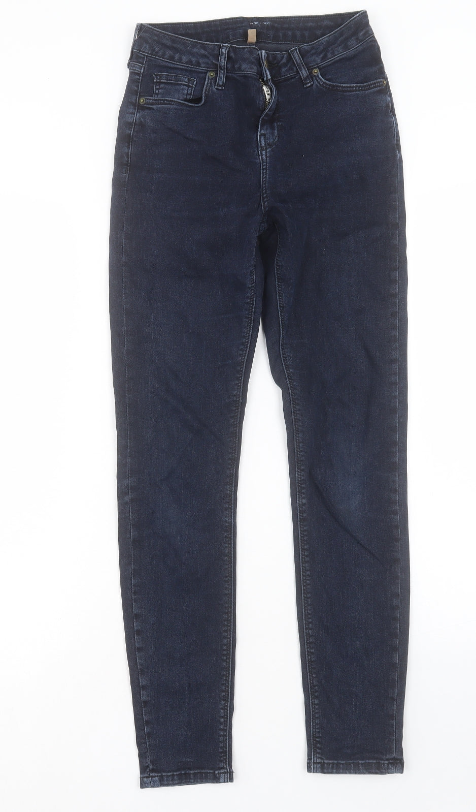 Topshop Womens Blue Cotton Skinny Jeans Size 26 in L28 in Regular Button - To Fit 32