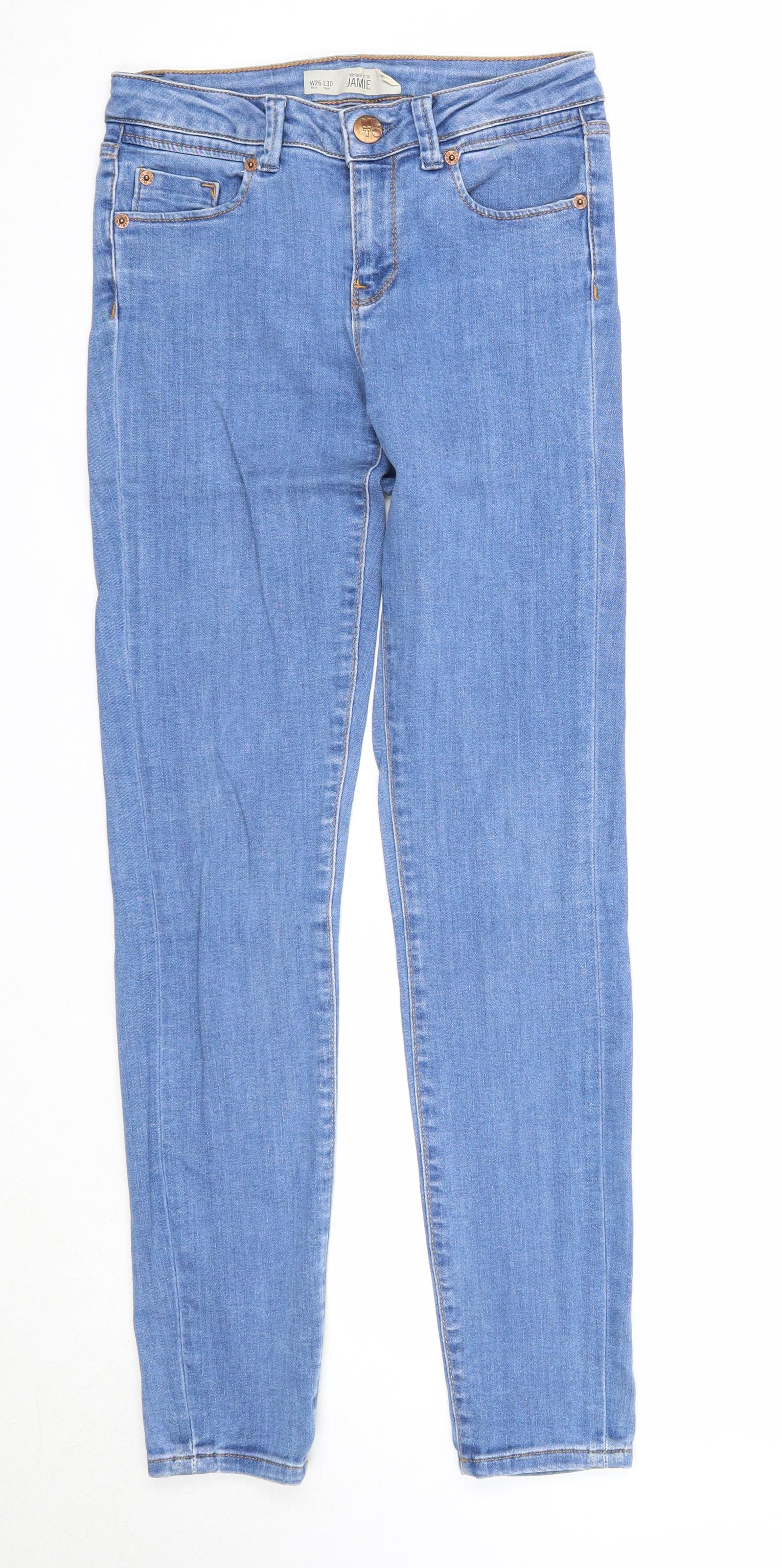 Topshop Womens Blue Cotton Skinny Jeans Size 26 in L30 in Regular Zip