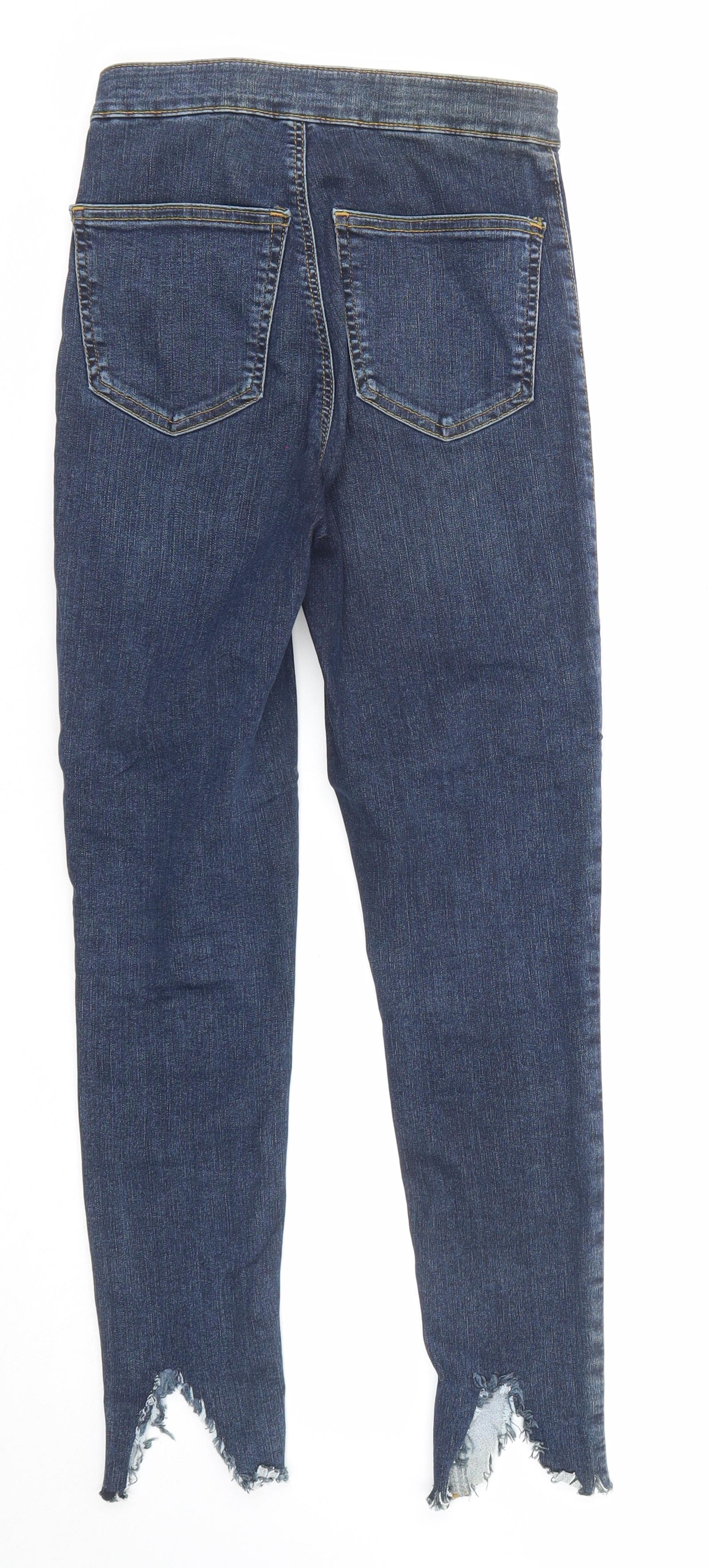 Topshop Womens Blue Cotton Skinny Jeans Size 26 in L30 in Regular Zip - Distressed Hem Look