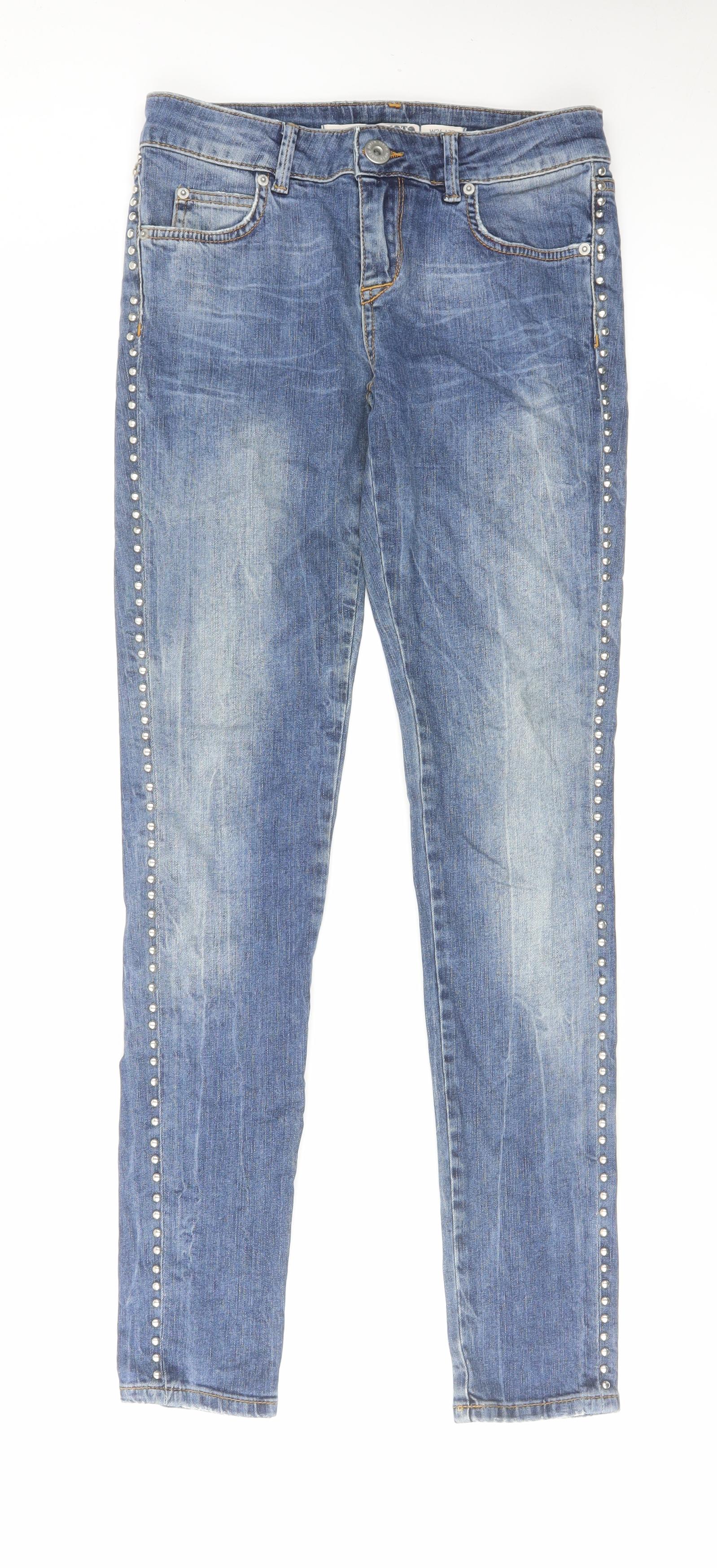 Topshop Womens Blue Cotton Skinny Jeans Size 26 in L32 in Regular Zip - Embellished