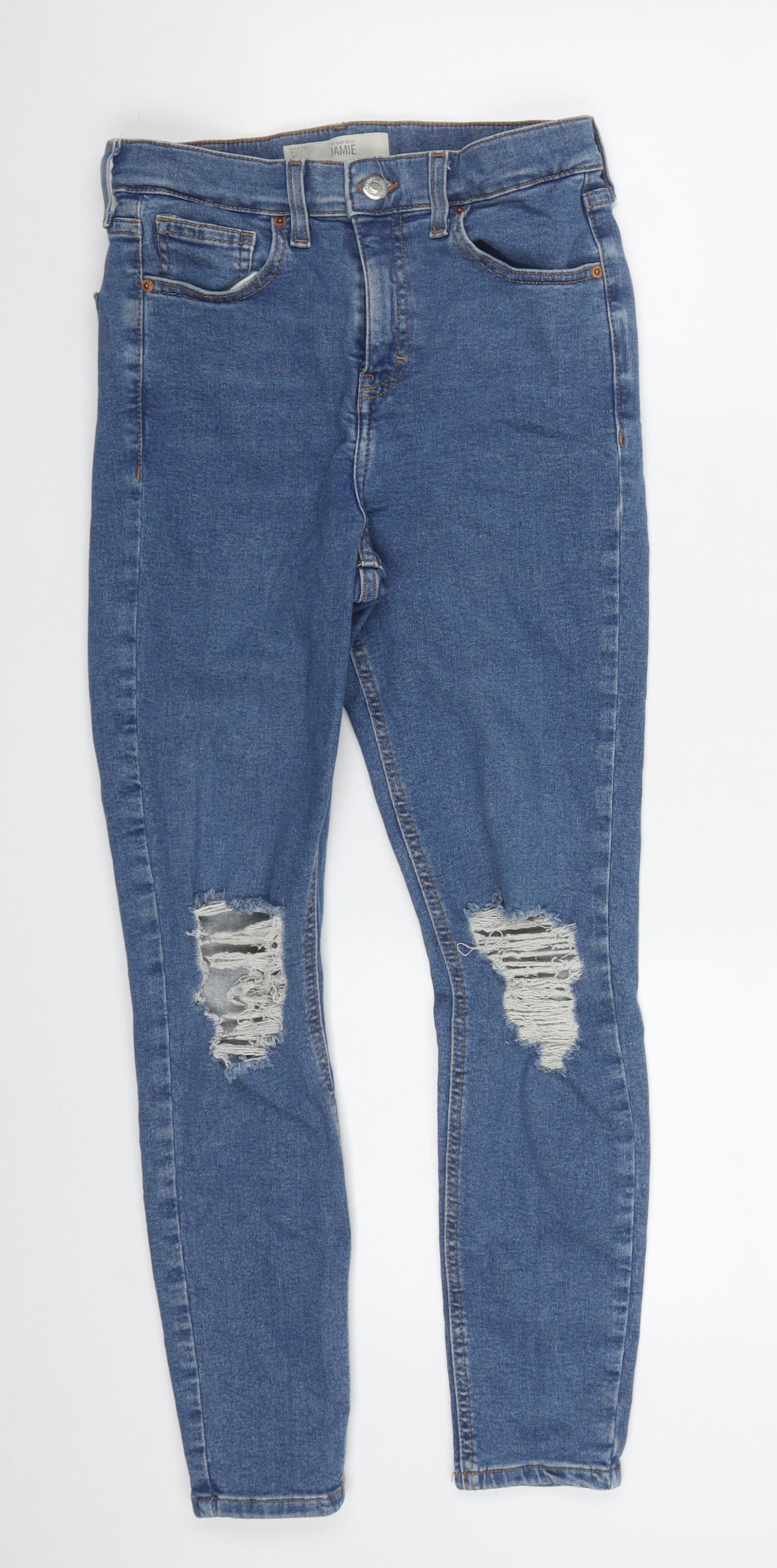 Topshop Womens Blue Cotton Skinny Jeans Size 28 in L26 in Regular Button