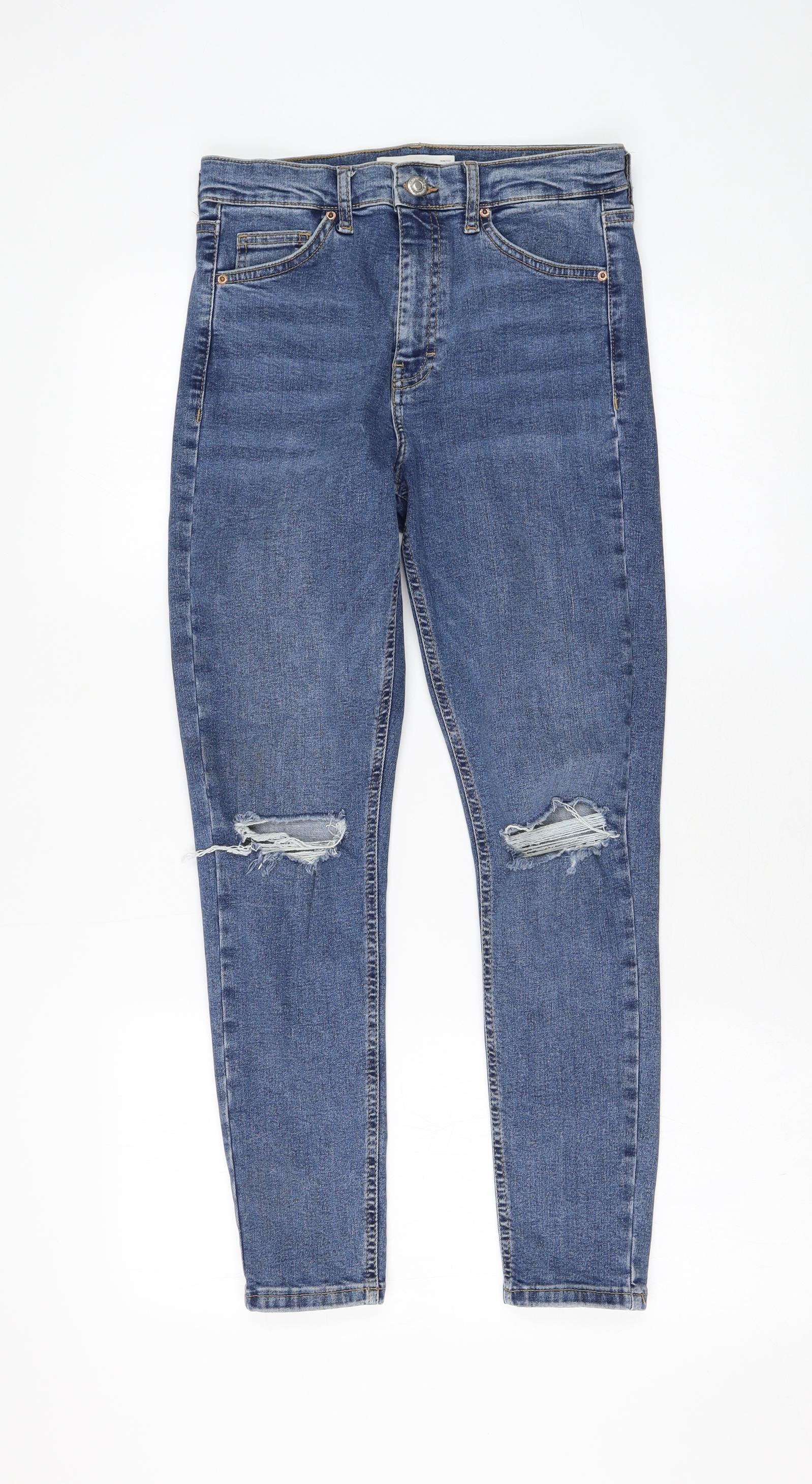 Topshop Womens Blue Cotton Skinny Jeans Size 28 in L30 in Regular Zip