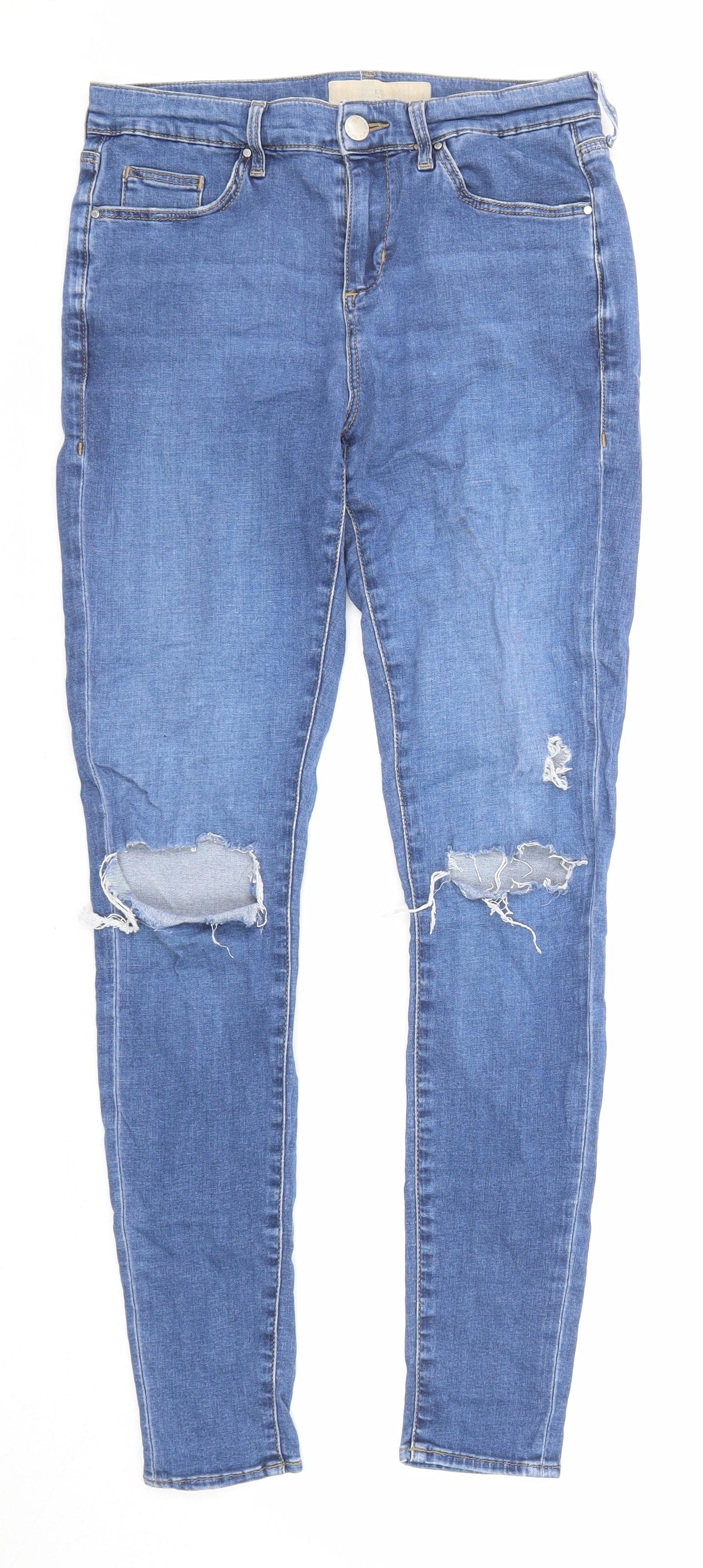 Topshop Womens Blue Cotton Skinny Jeans Size 28 in L32 in Regular Zip