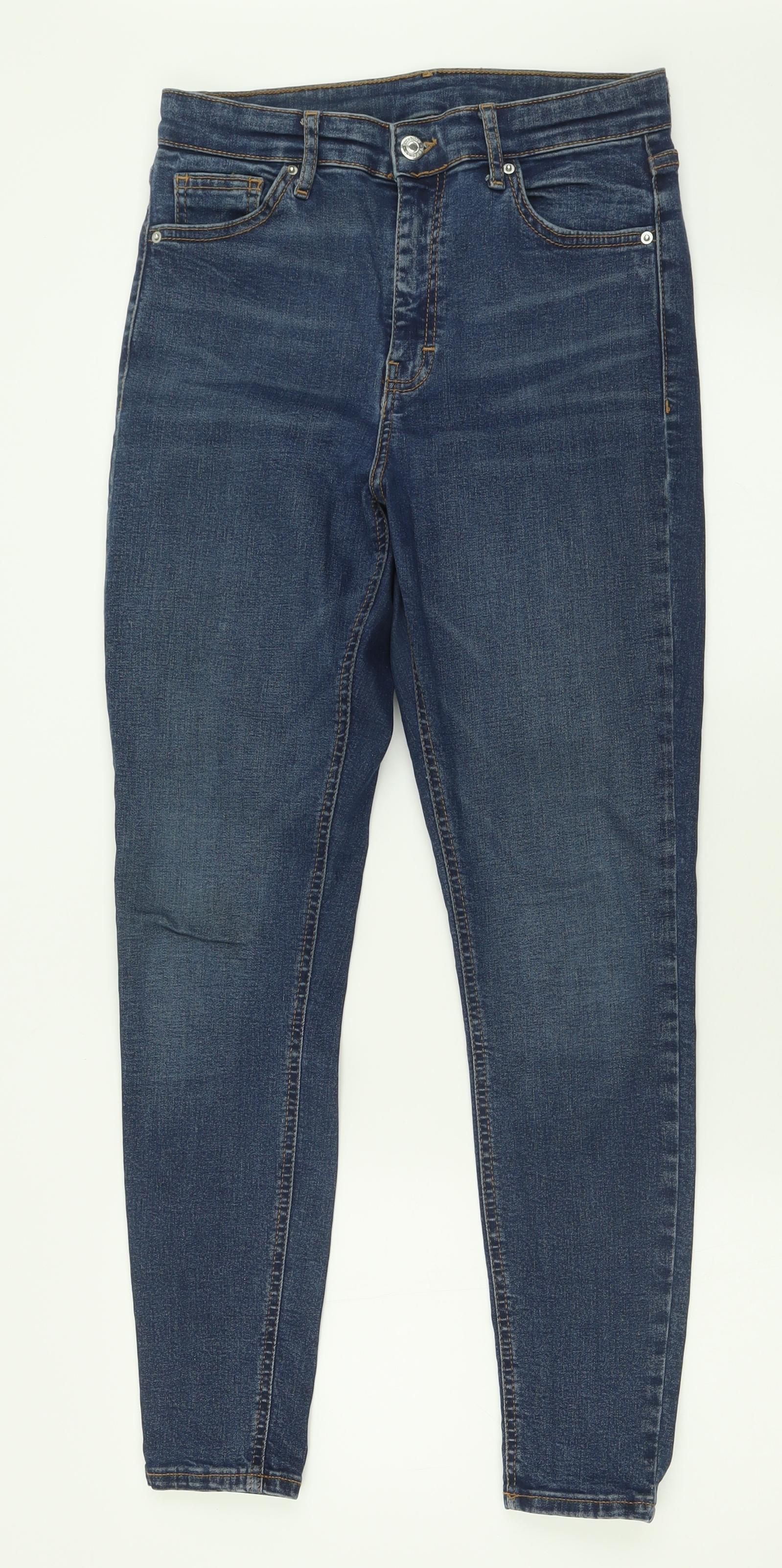 Topshop Womens Blue Cotton Skinny Jeans Size 28 L32 in Regular Button