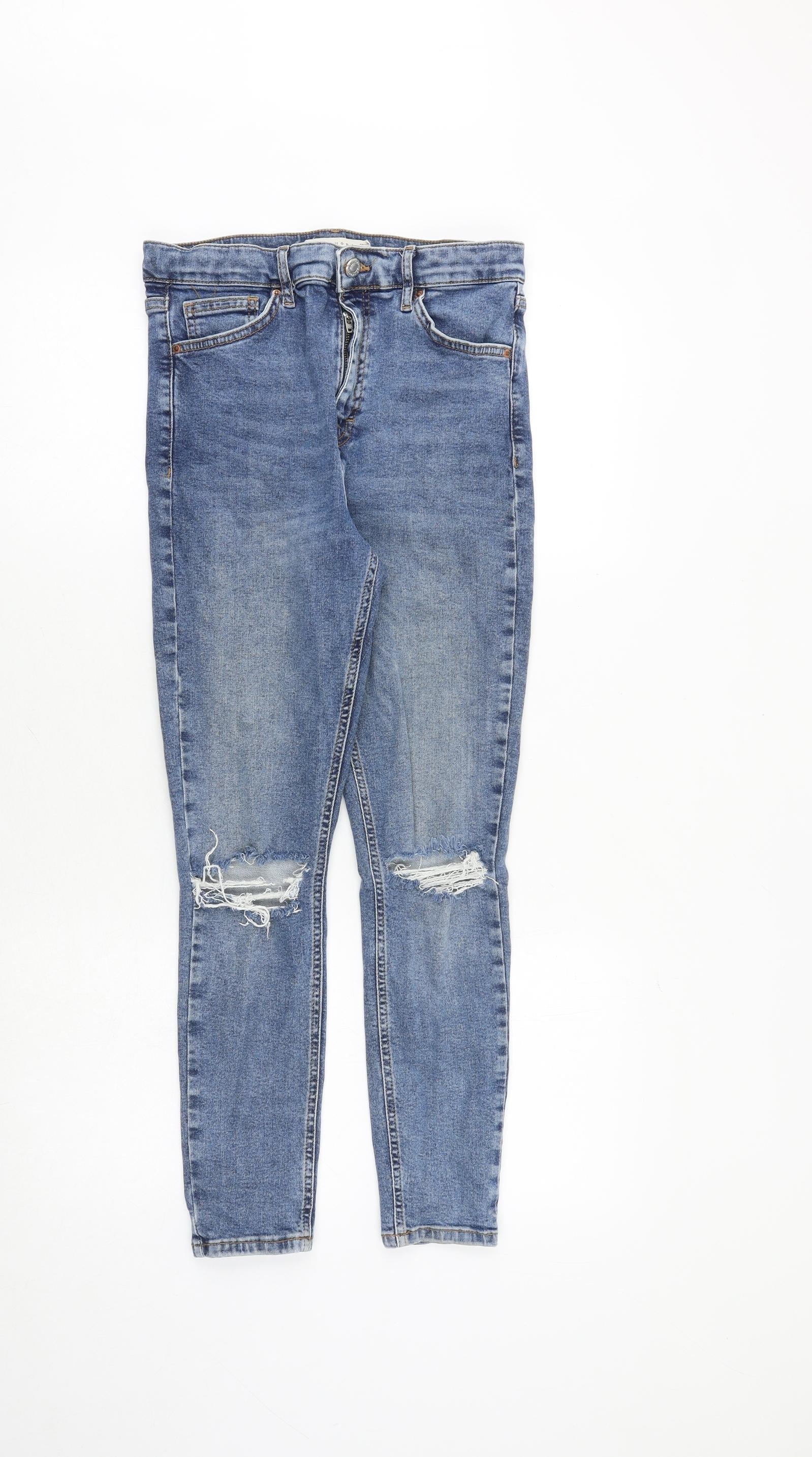 Topshop Womens Blue Cotton Skinny Jeans Size 30 in Regular Zip