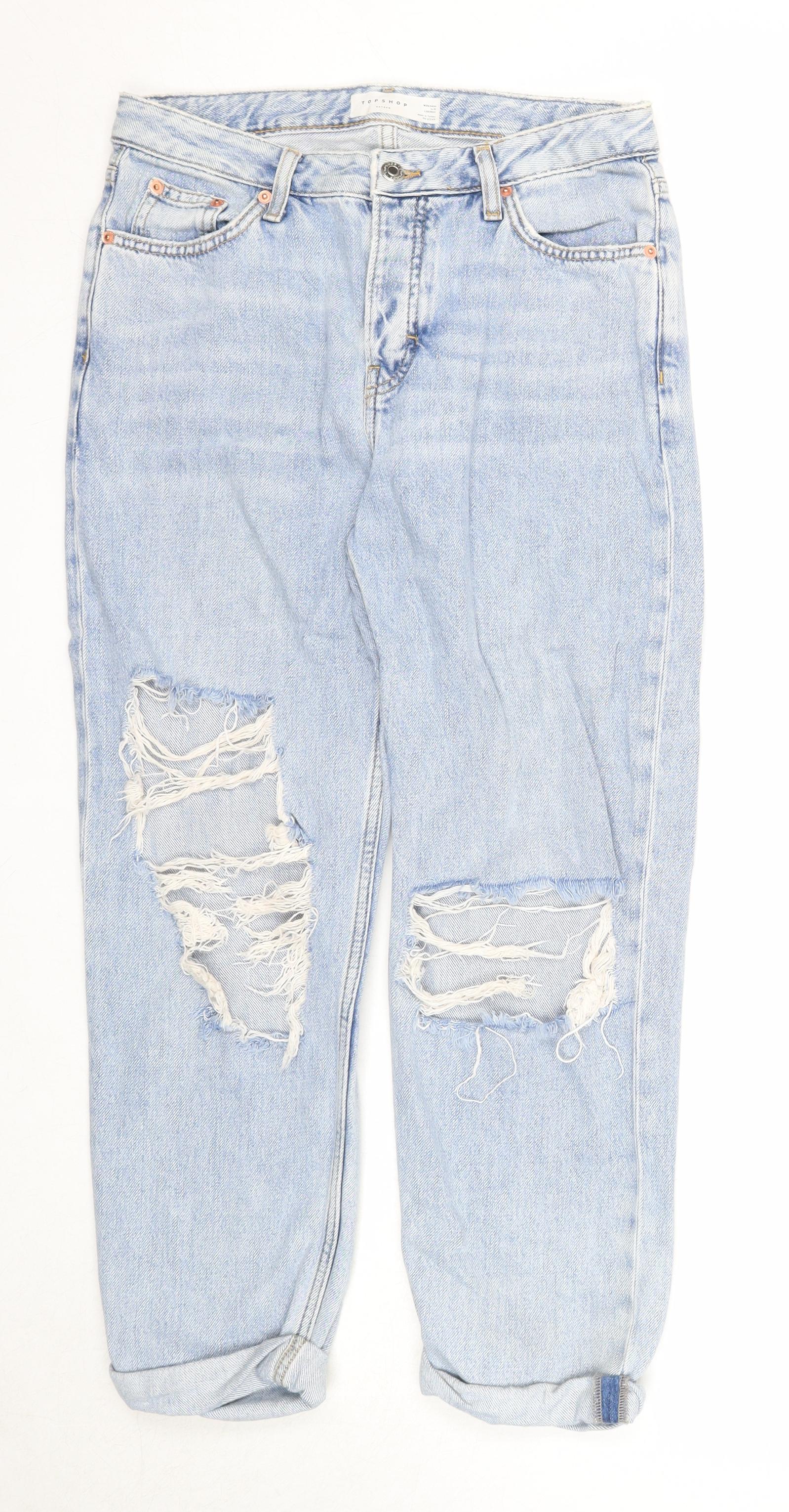 Topshop Womens Blue Cotton Straight Jeans Size 25 in L32 in Regular Zip