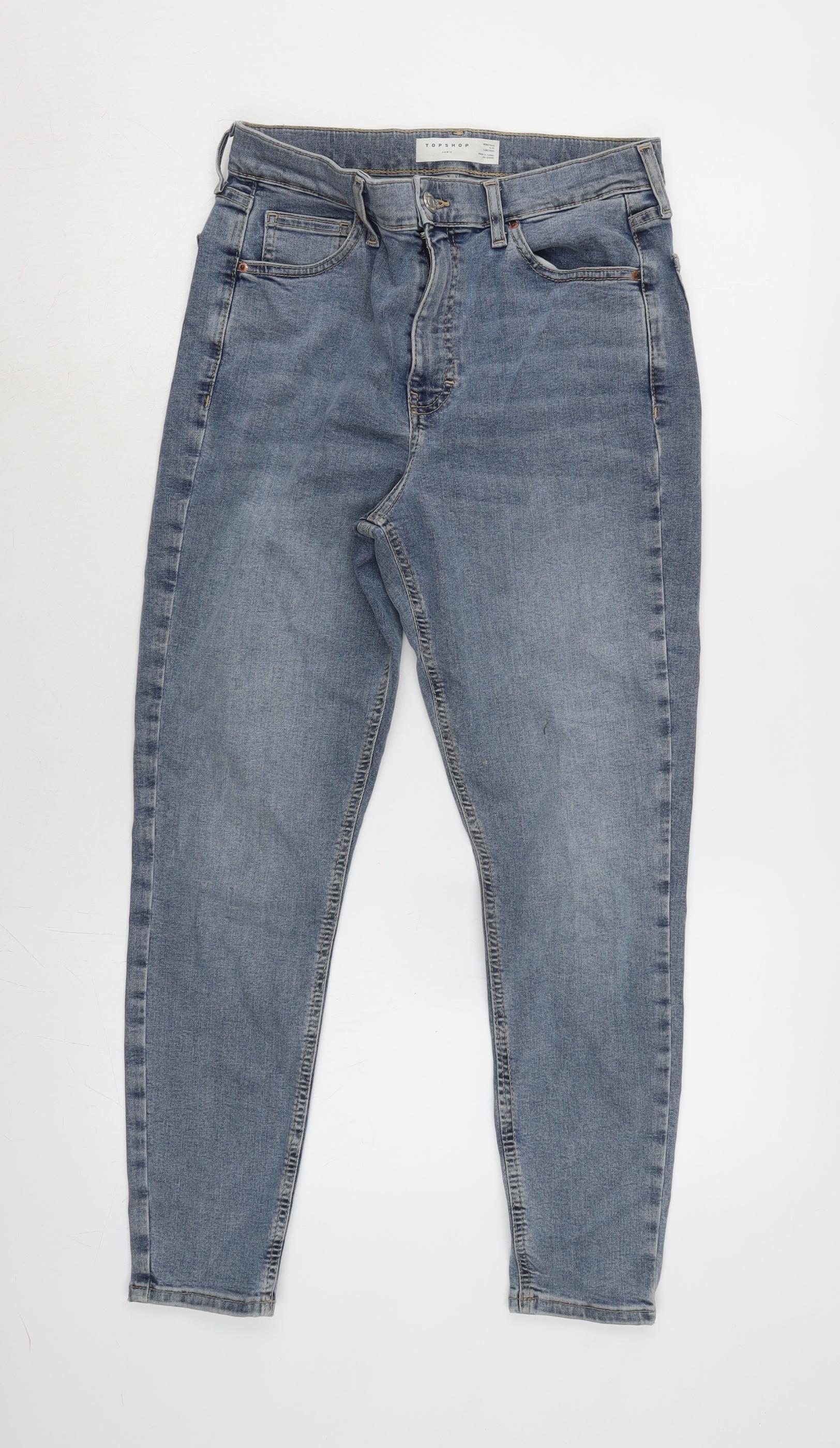 Topshop Womens Blue Cotton Straight Jeans Size 30 in L30 in Regular Zip