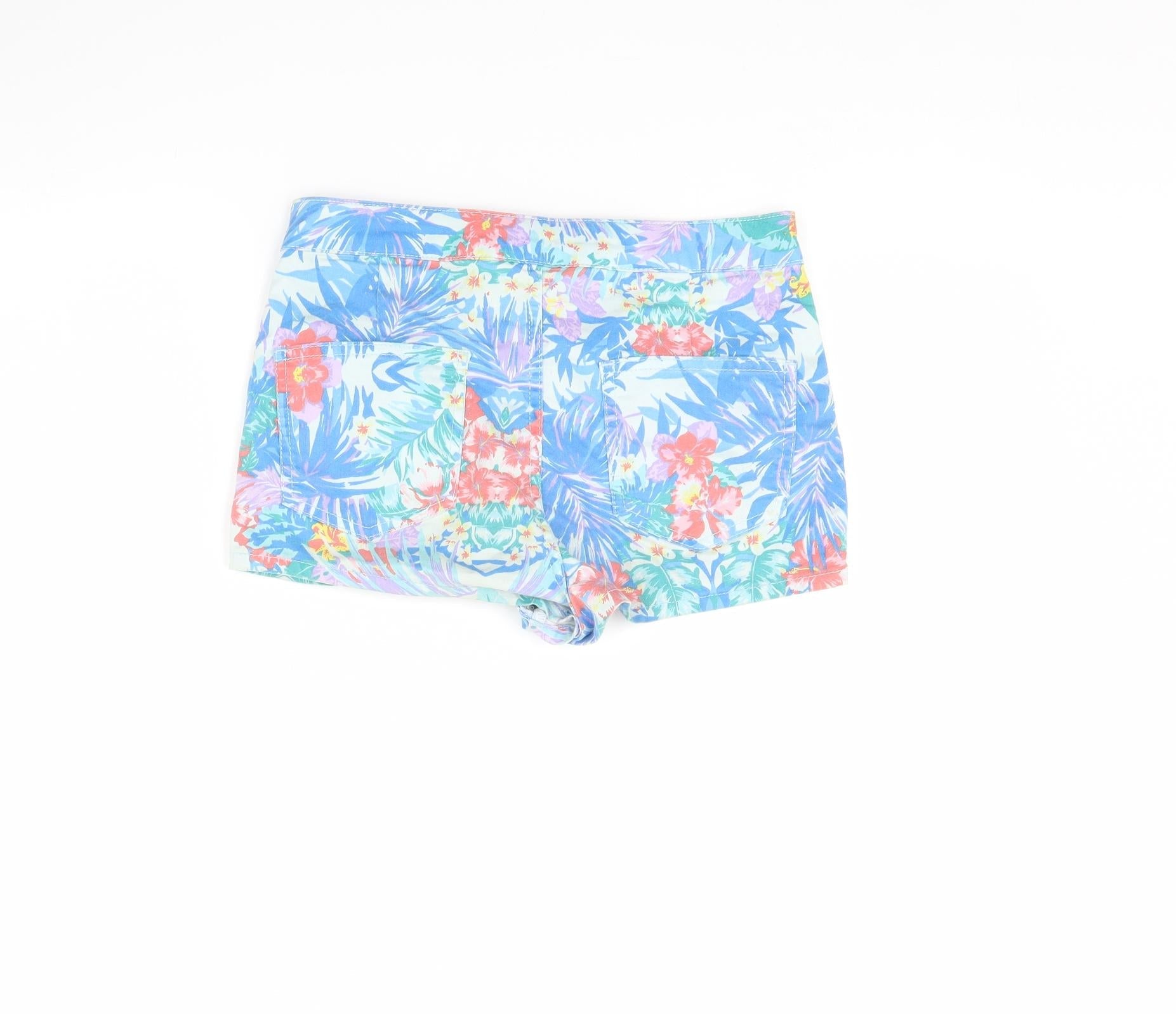 Topshop Womens Blue Floral Cut-Off Shorts Size 28