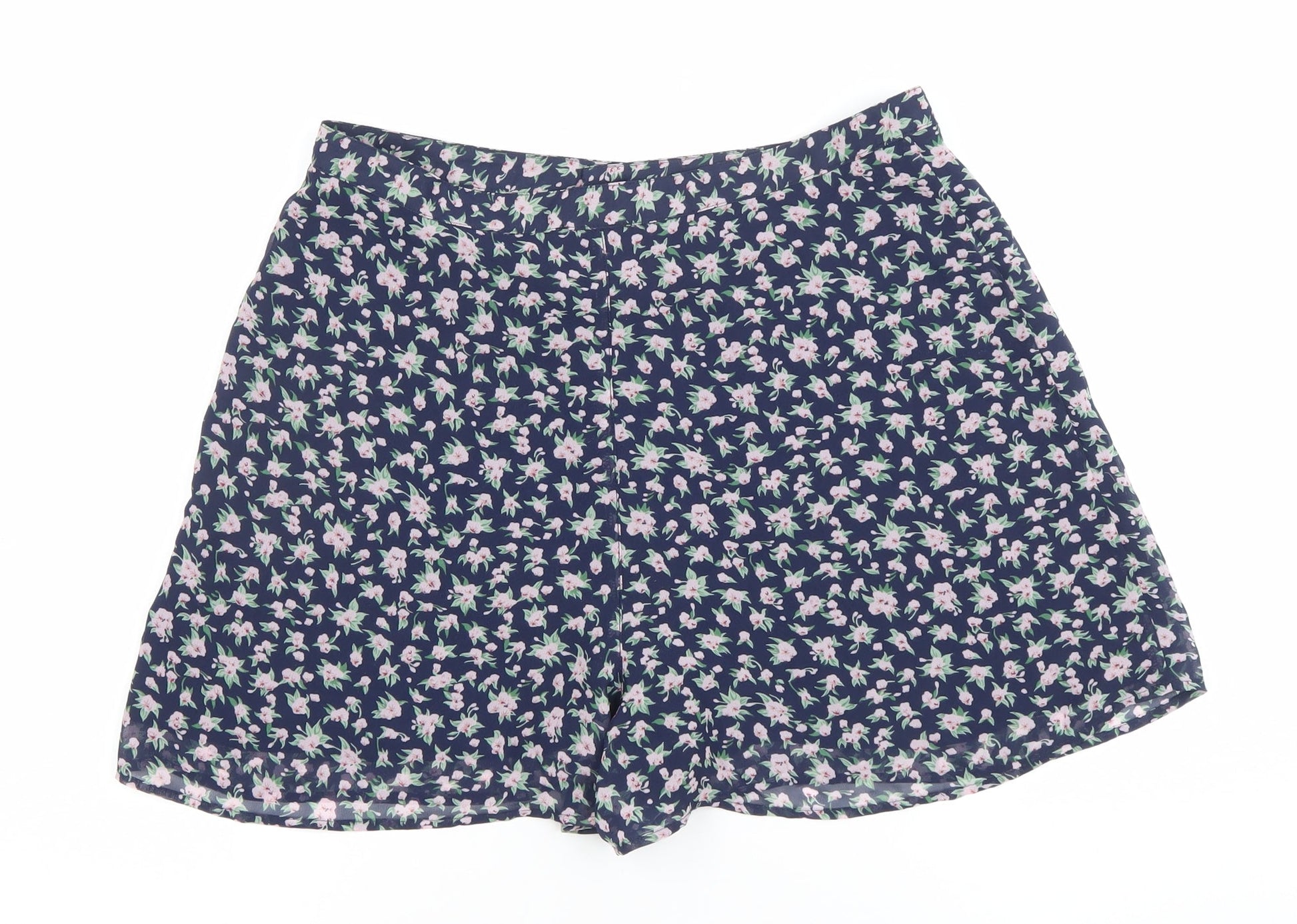 Topshop Womens Blue Floral High Rise Button Shorts Size 12