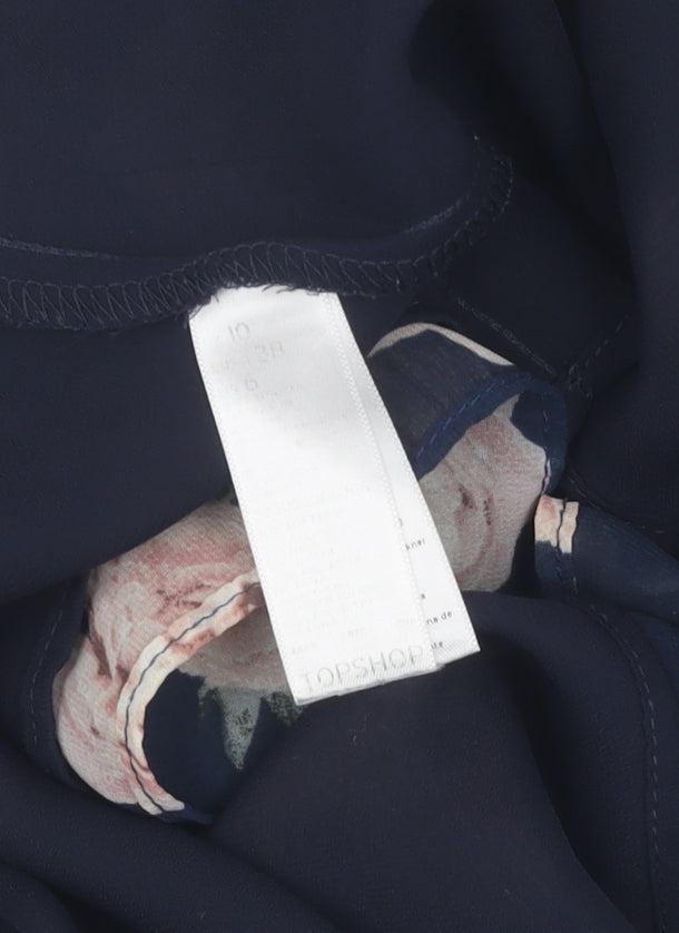 Topshop Women's Blue Floral Playsuit, Size 10, V-Neck, Ruffle