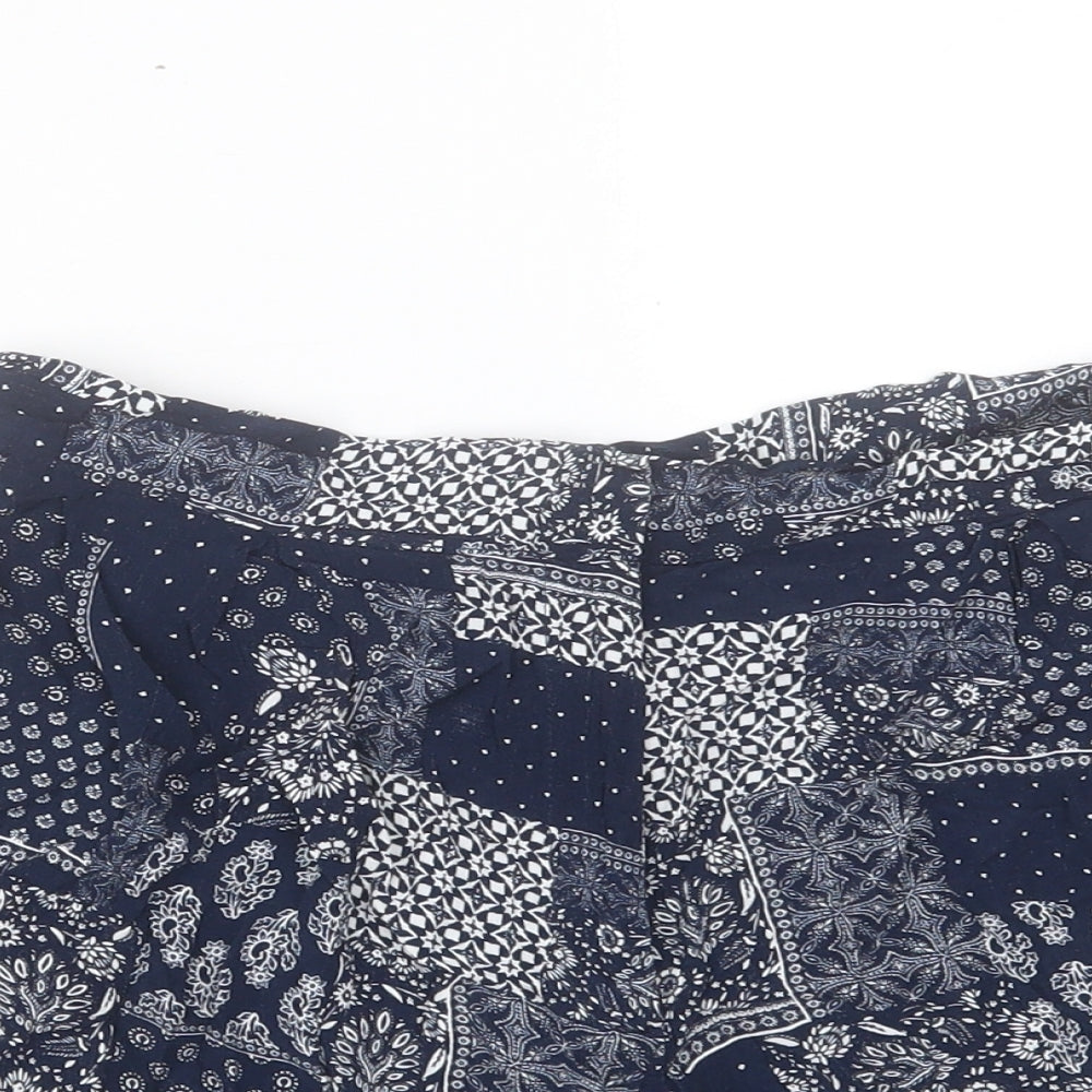 Topshop Womens Blue Geometric Viscose Boyfriend Shorts Size 10 L3 in Regular Hook & Eye