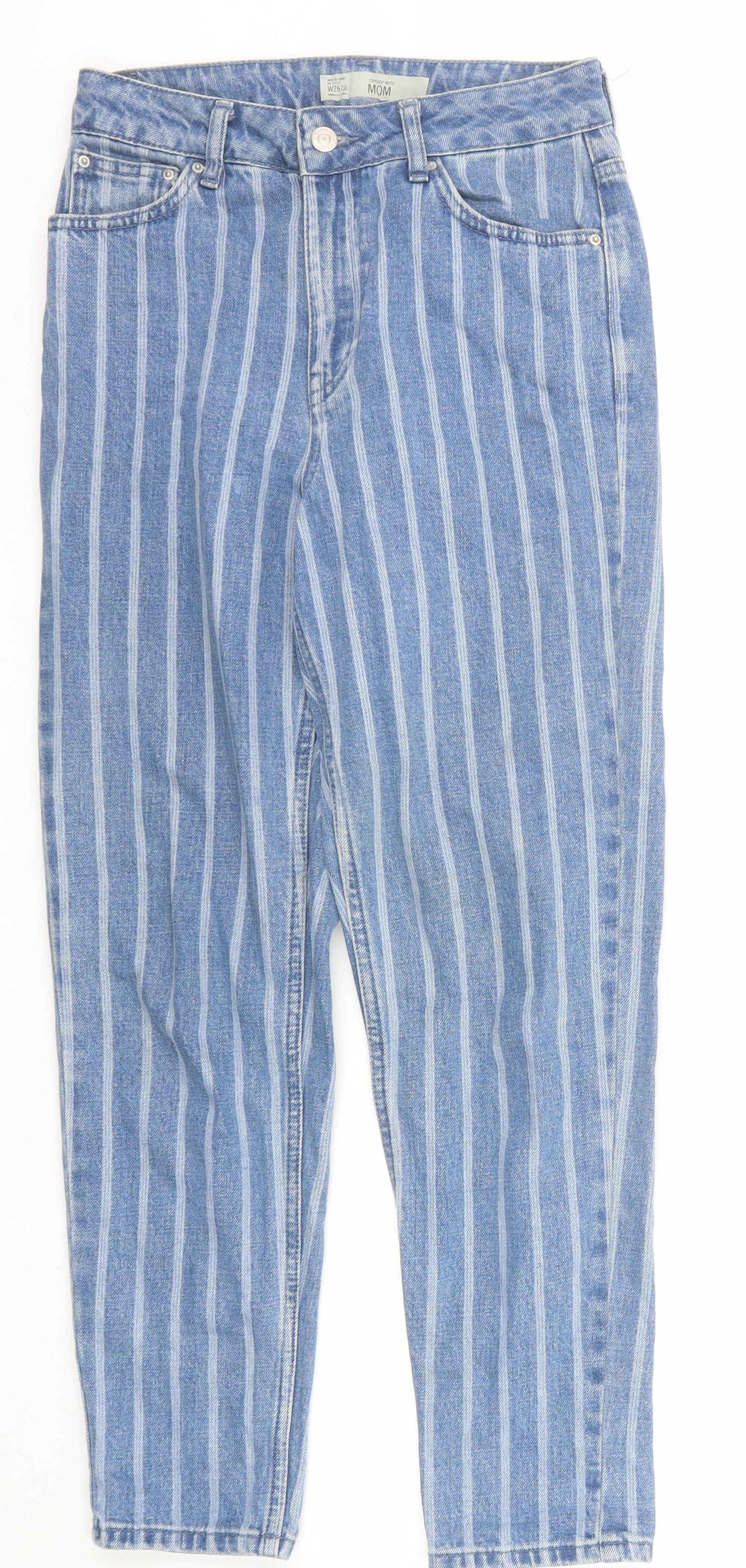 Topshop Womens Blue Striped Cotton Mom Jeans Size 26 in Regular Zip