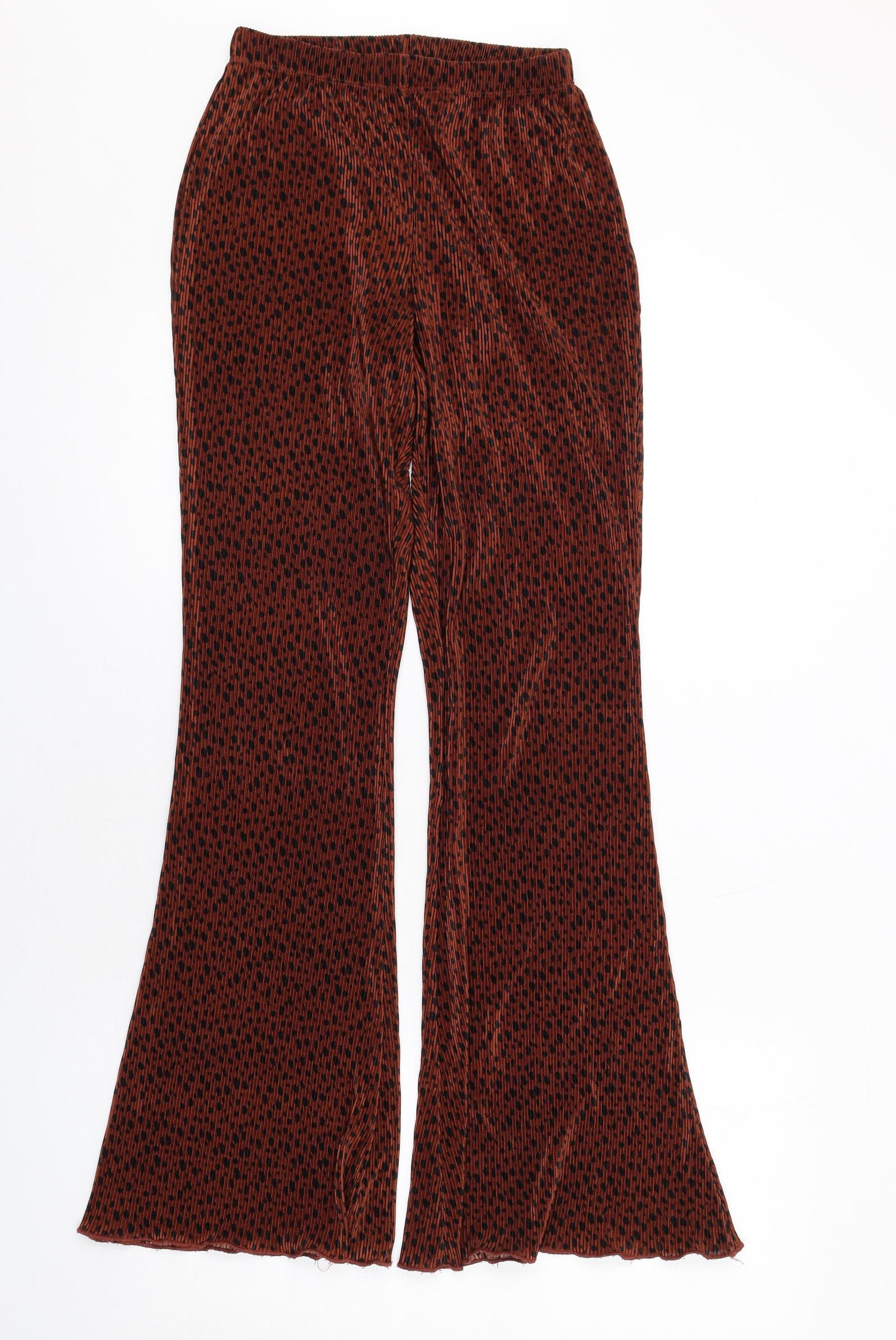 Topshop Womens Brown Animal Print Polyester Trousers Size 8 L32 in Regular - Plisse