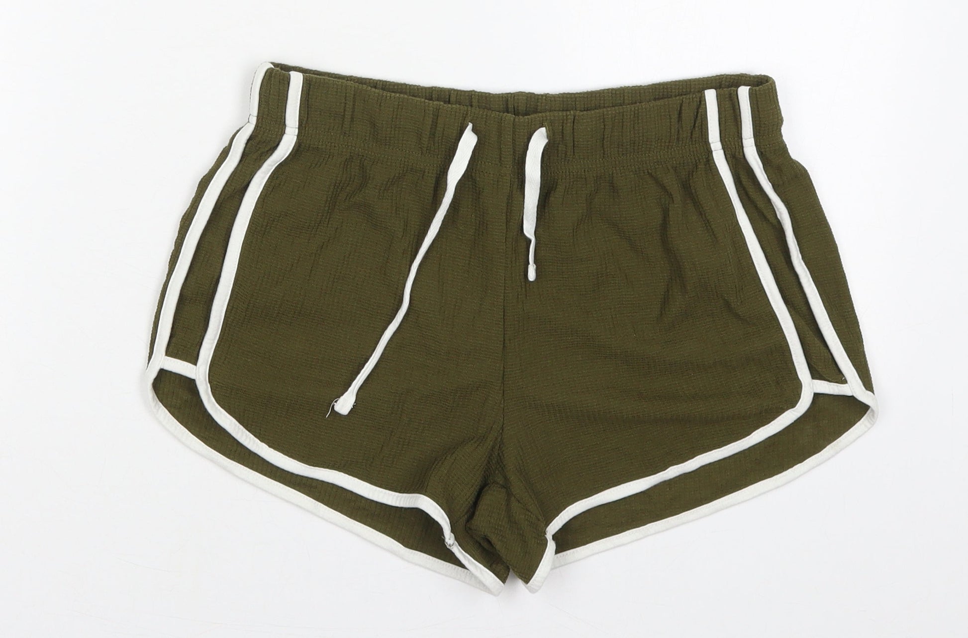 Topshop Womens Green Cotton Sweat Shorts Size 6 Regular Drawstring