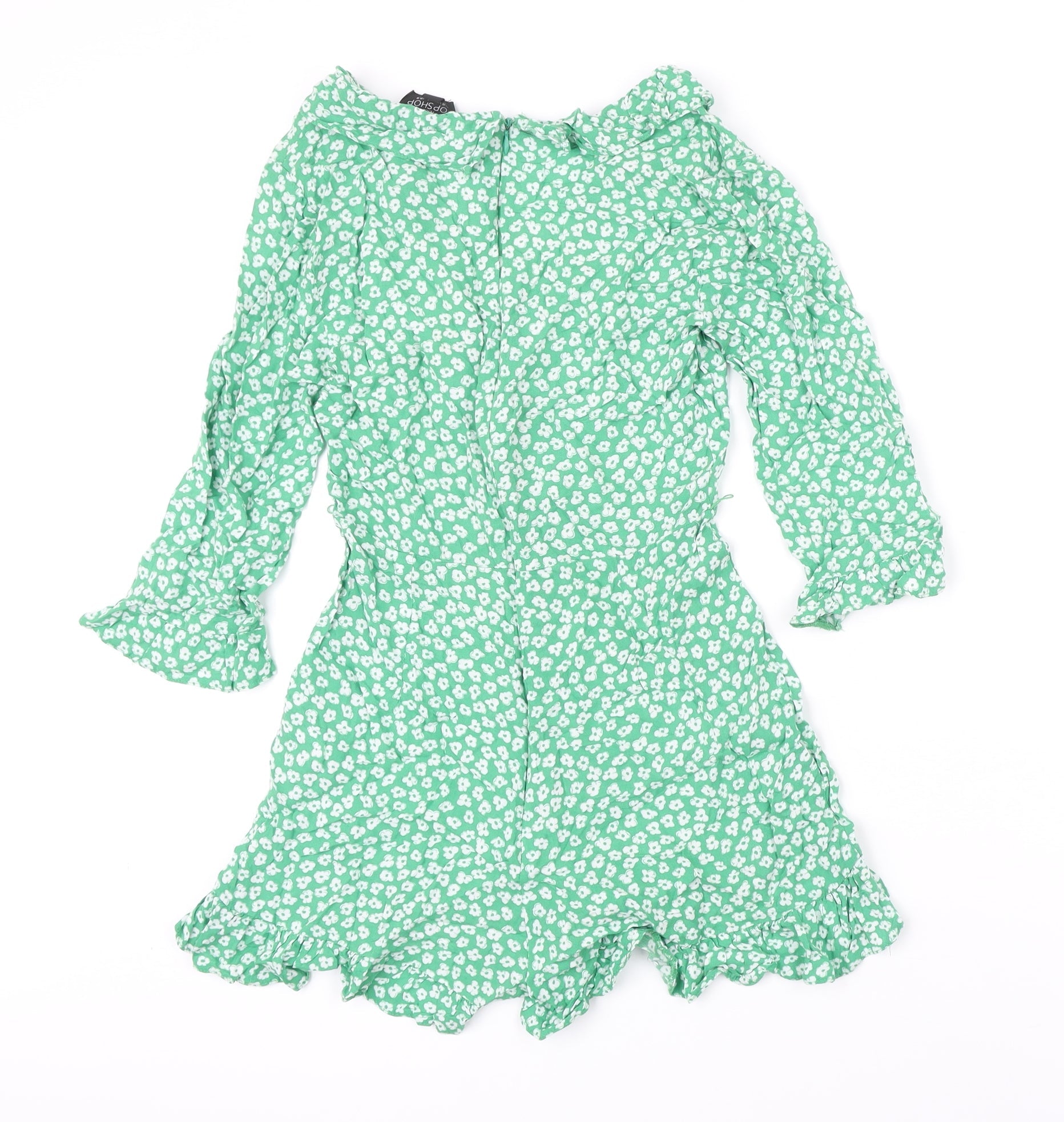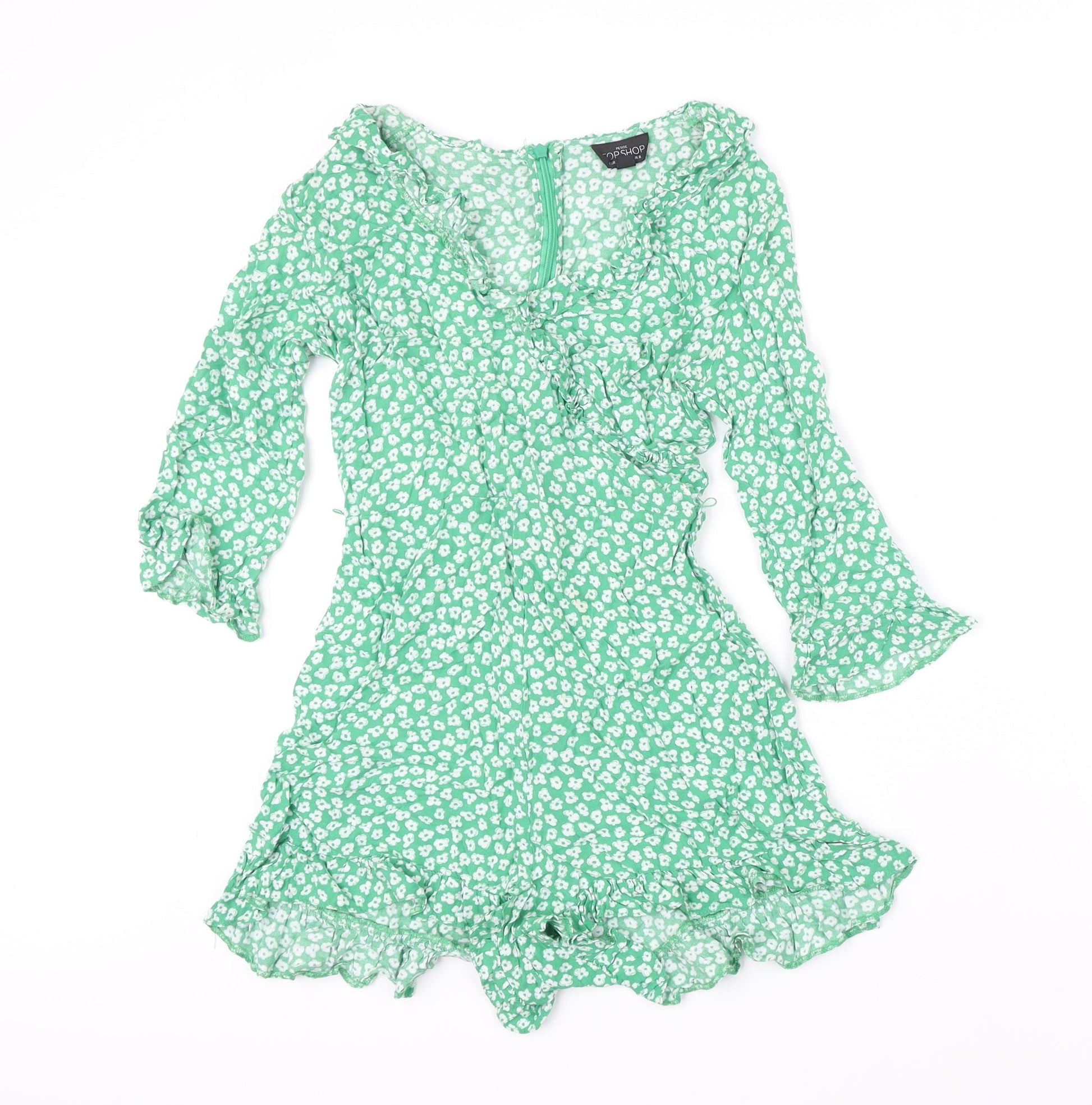 Topshop Womens Green Floral Viscose Playsuit One-Piece Size 8 Zip