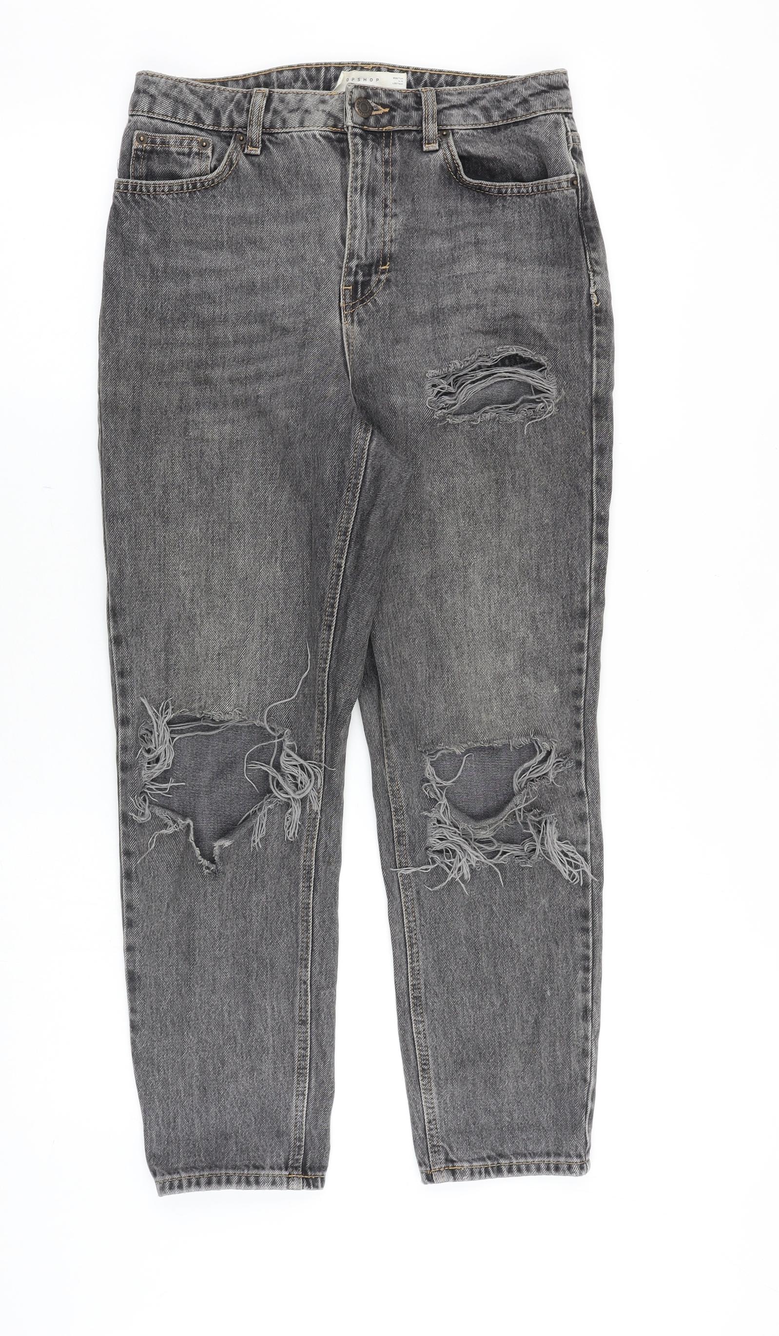 Topshop Womens Grey Cotton Mom Jeans Size 28 in Regular Zip