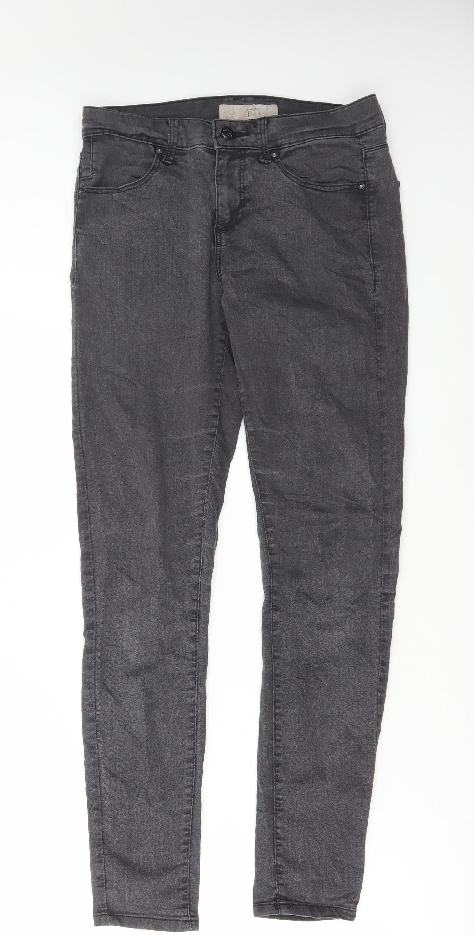 Topshop Womens Grey Cotton Skinny Jeans Size 28 in L30 in Regular Button