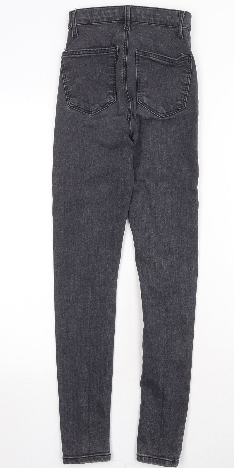 Topshop Womens Grey Herringbone Cotton Skinny Jeans Size 24 in Regular Zip