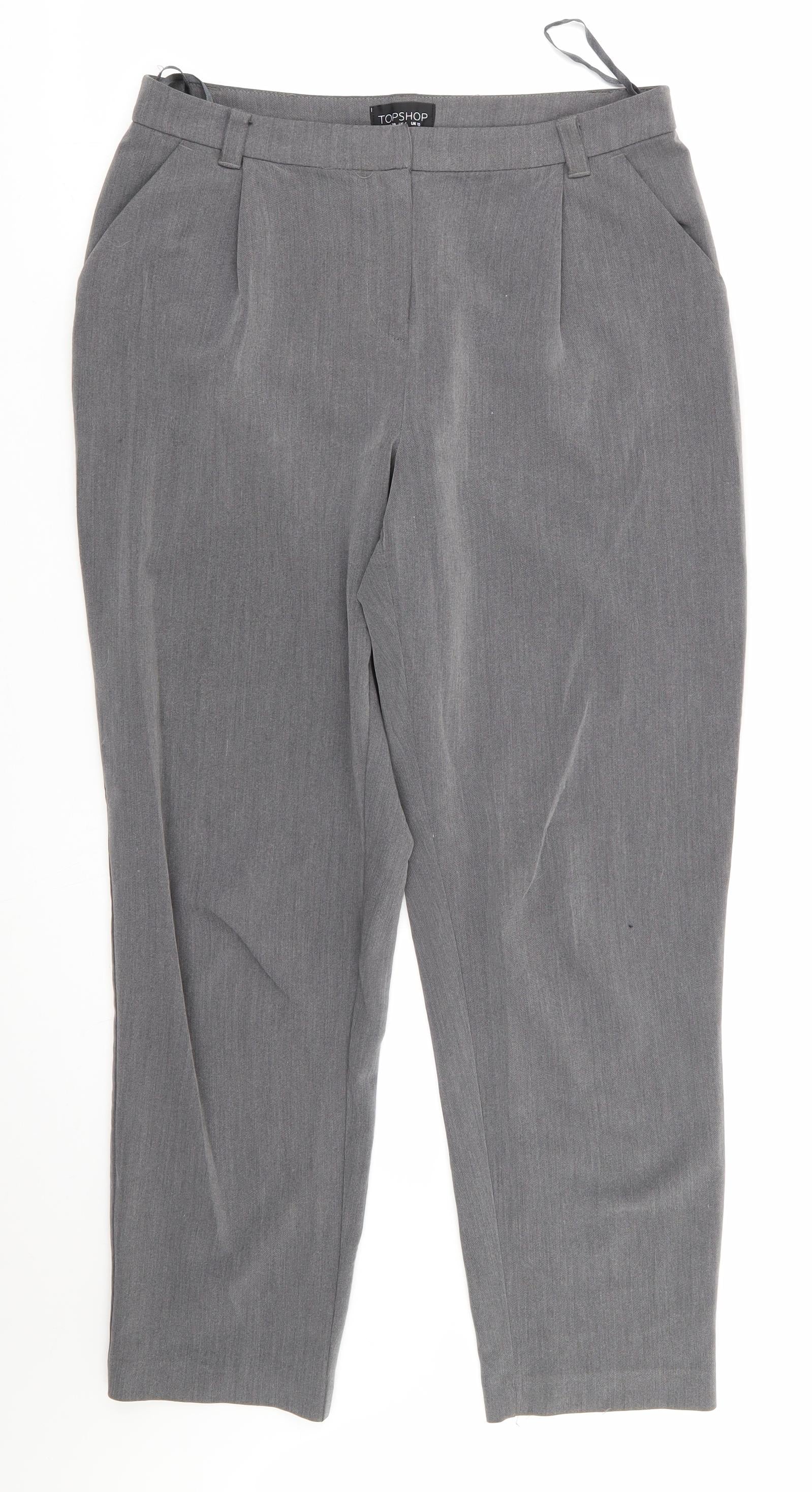 Topshop Womens Grey Polyester Trousers Size 10 L26 in Regular - Light Grey