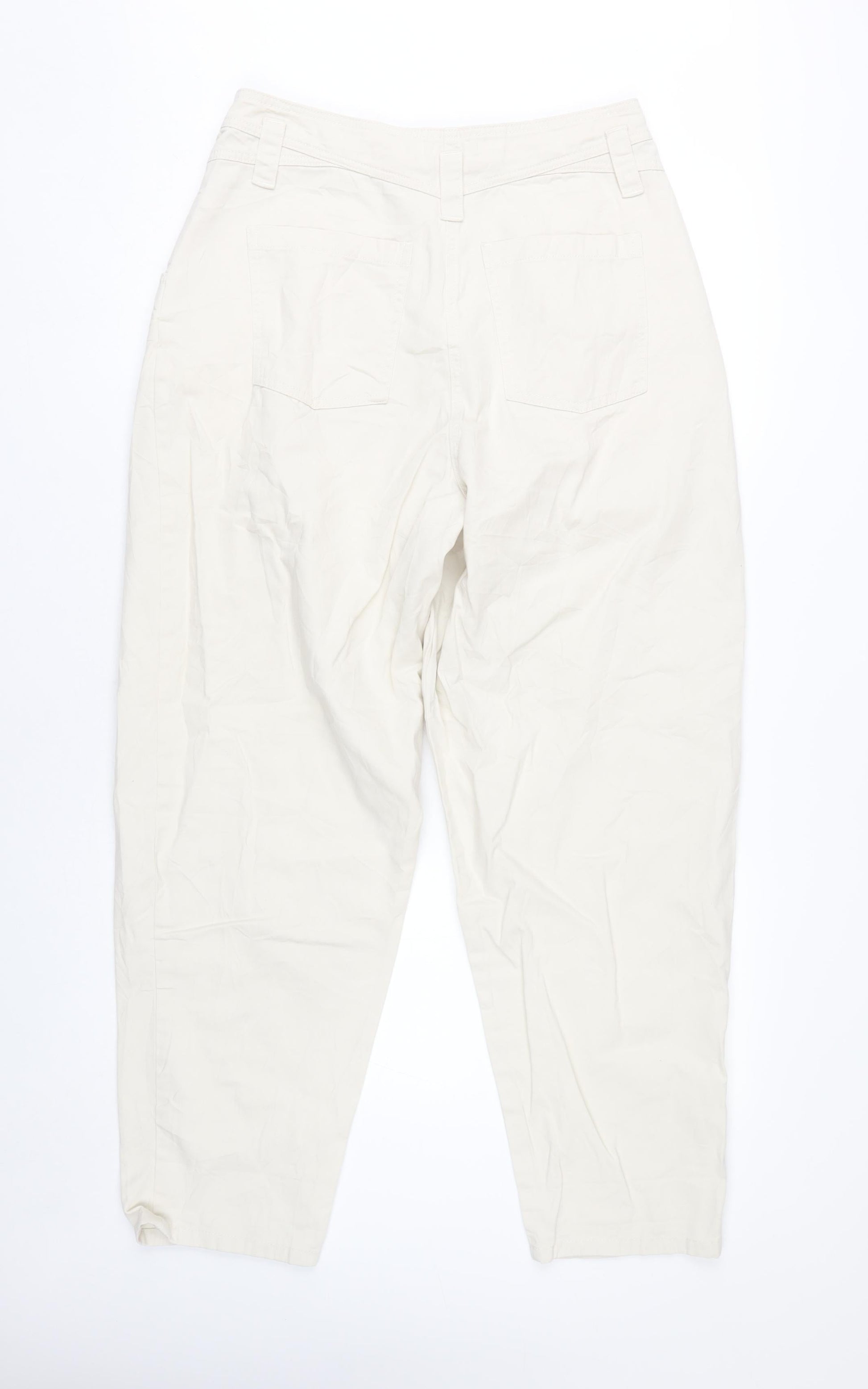 Topshop Womens Ivory Chino Tapered Trousers Size 12 High Rise Cotton