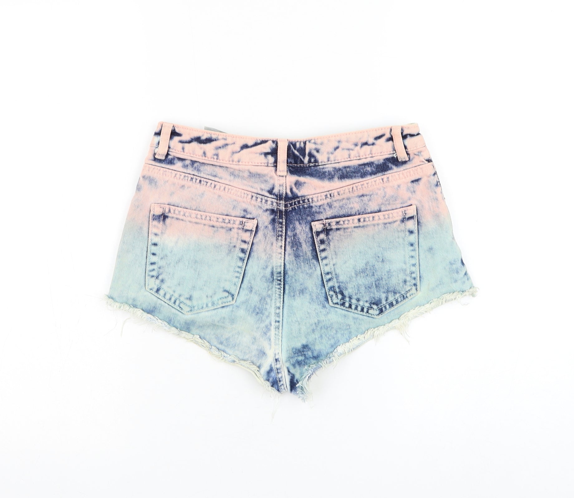 Topshop Womens Multicoloured Cotton Boyfriend Shorts Size 26 in L3 in Regular Zip - Gradient