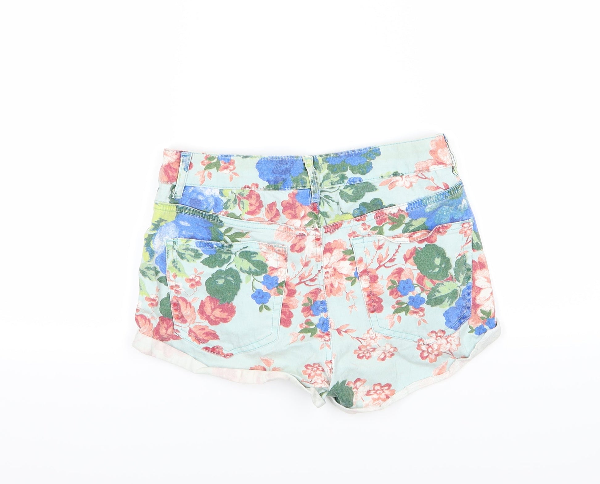 Topshop Womens Multicoloured Floral Denim Chino Shorts