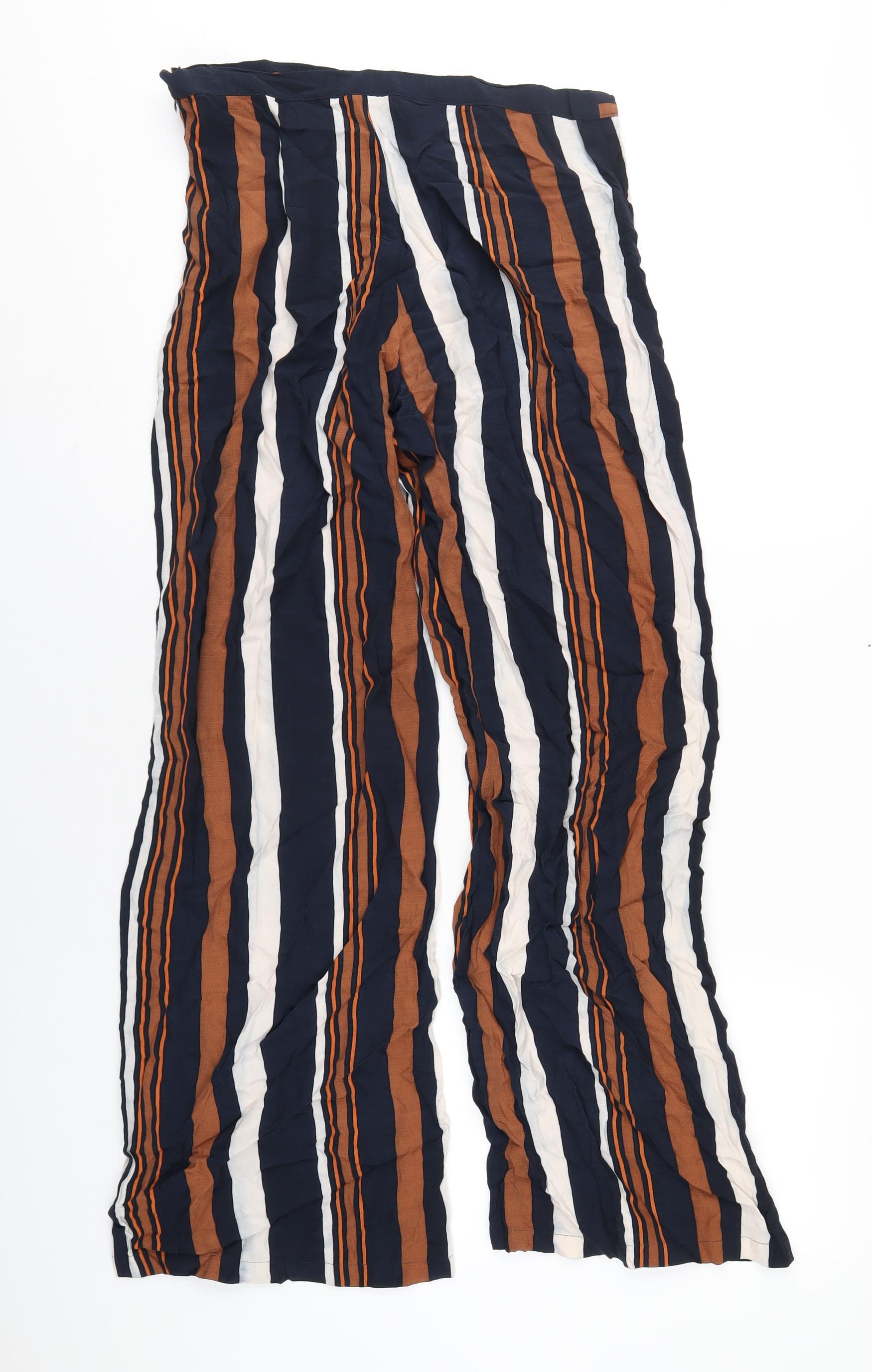 Topshop Womens Multicoloured Striped Viscose Trousers Size 12 L31 in Regular Zip
