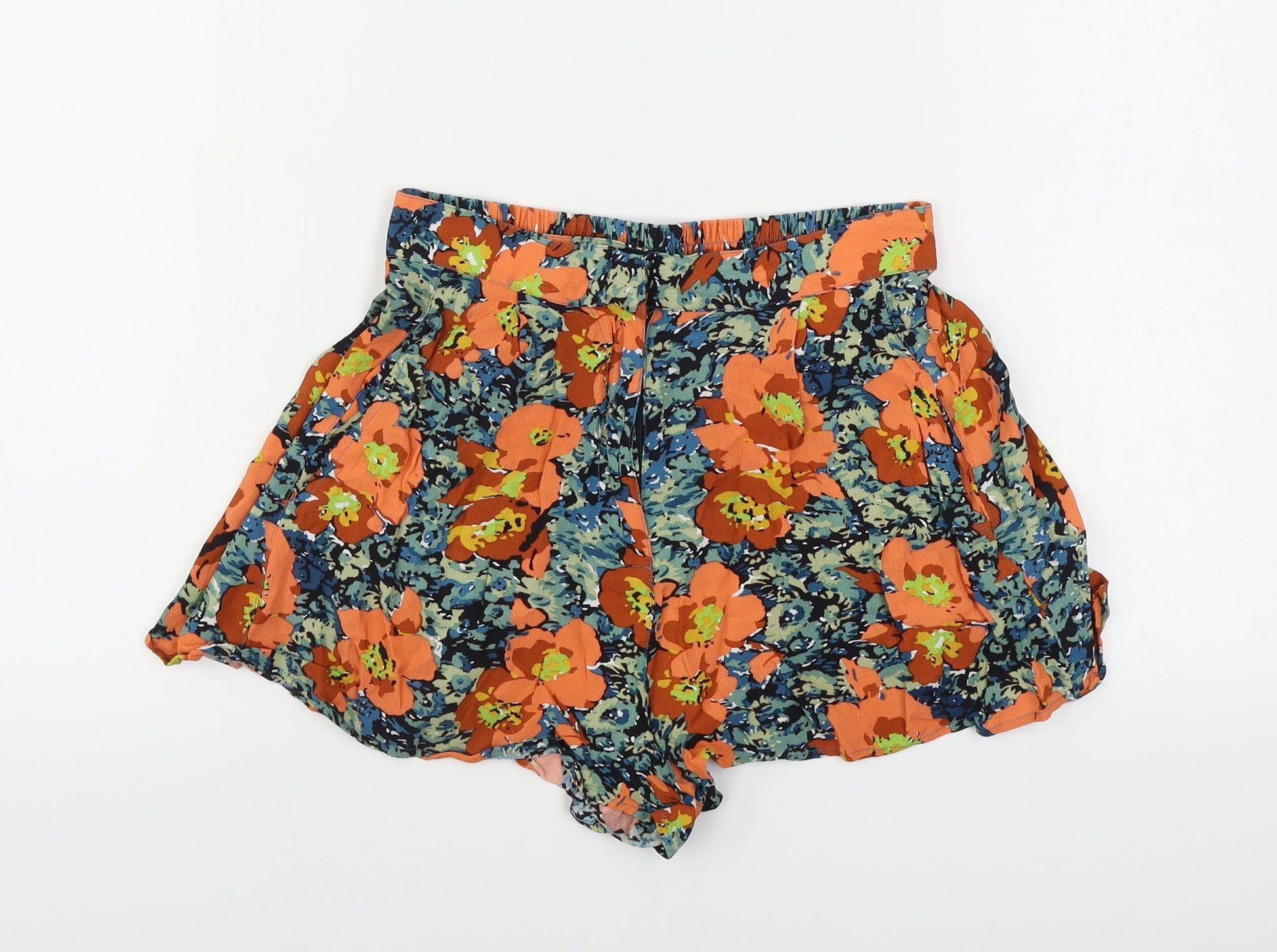 Topshop Womens Orange Floral Cut-Off Shorts Size 6