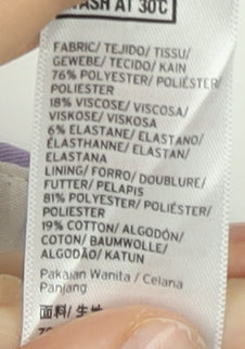 - Material Breakdown: 76% Polyester 18% Viscose 6% Elastane