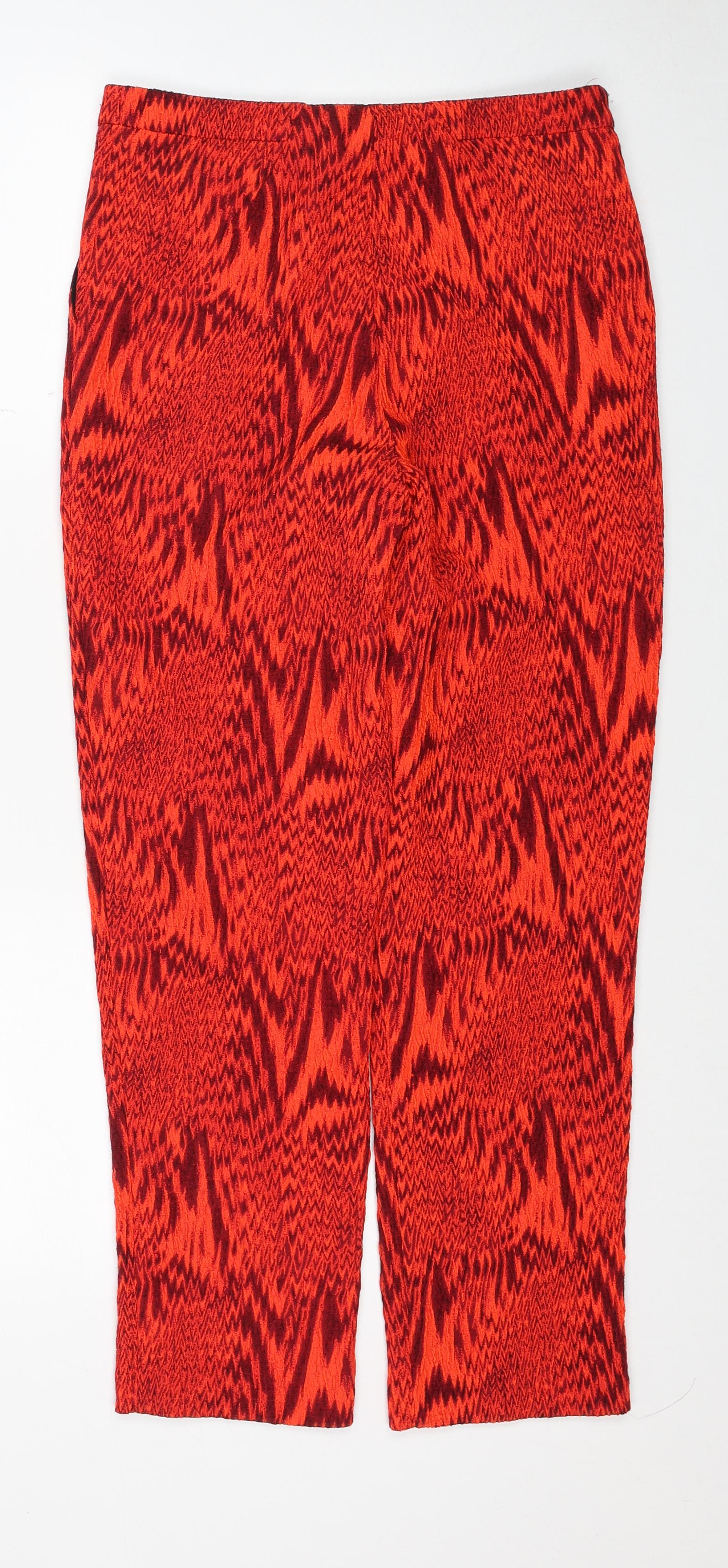 Topshop Womens Red Geometric Polyester Trousers Size 8 Regular Zip