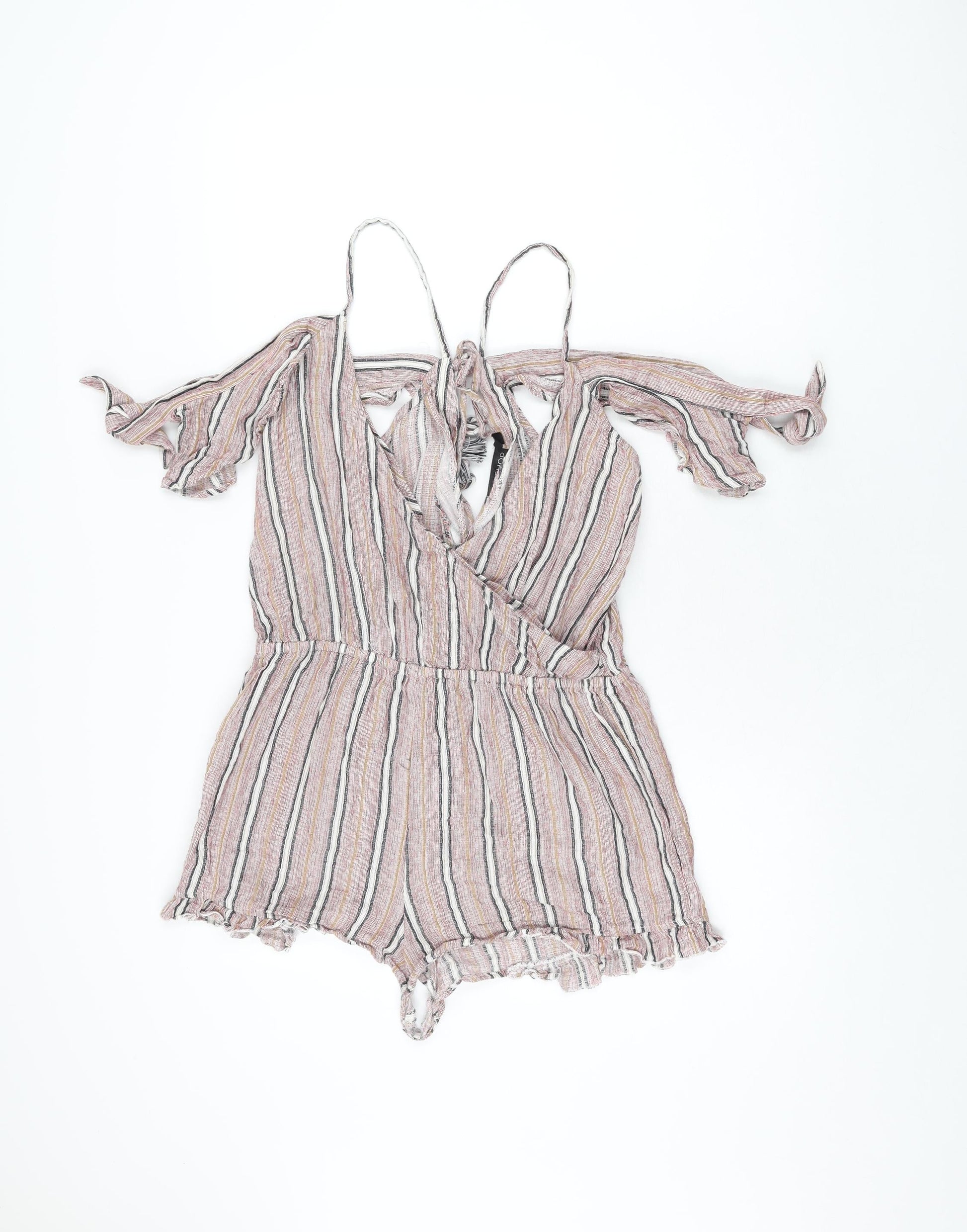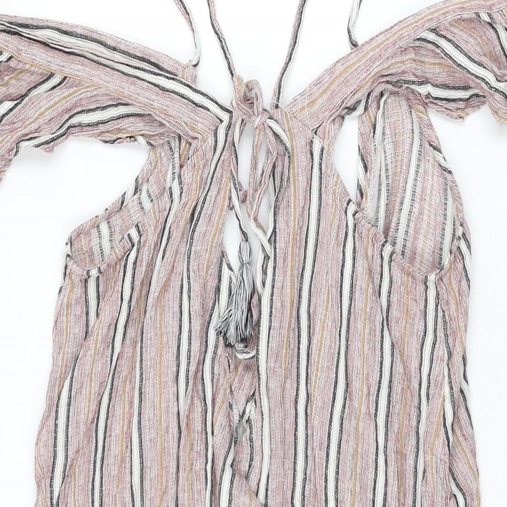 Topshop Womens Red Striped Cotton Playsuit One-Piece Size M Pullover