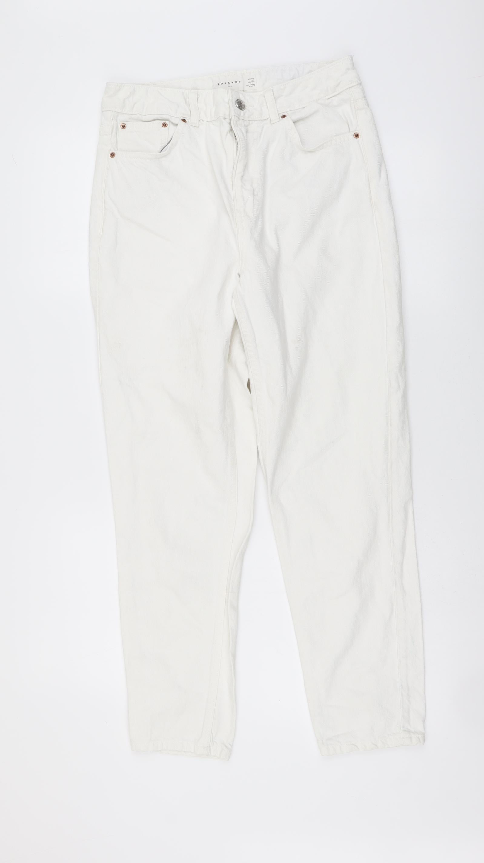 Topshop Womens White Cotton Mom Jeans Size 28 in L30 in Regular Button