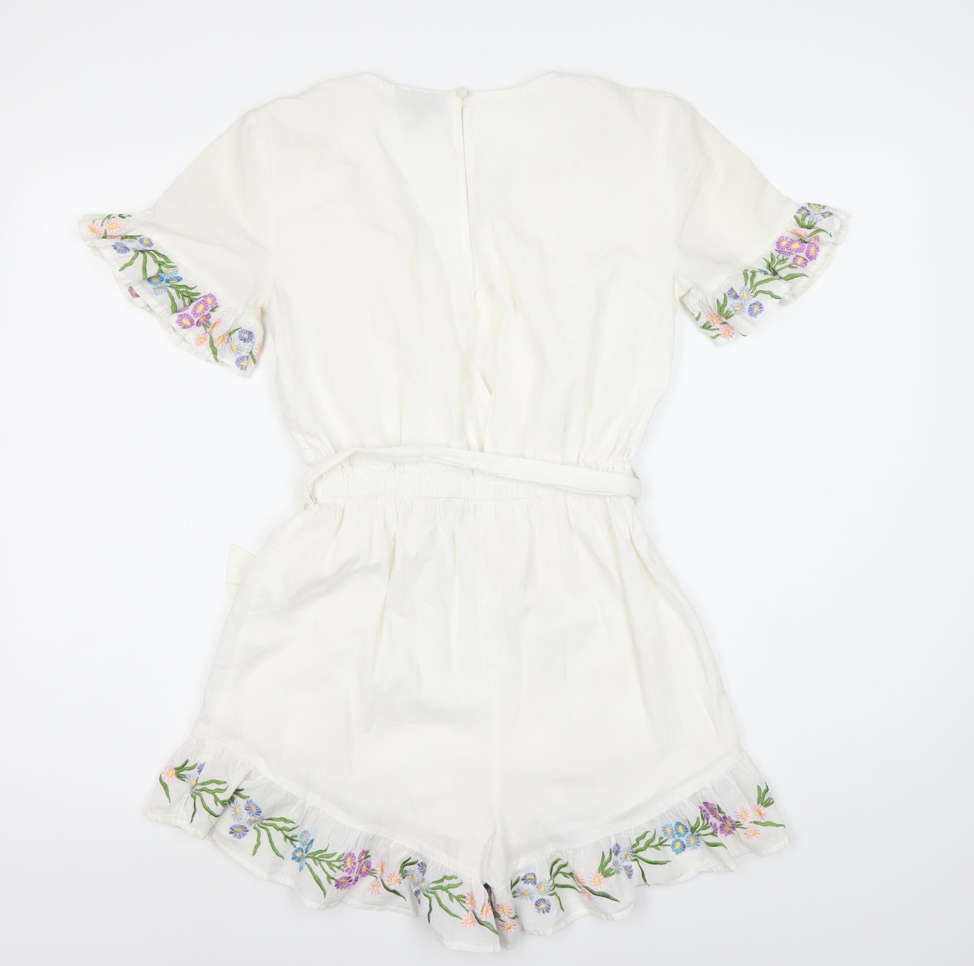 Topshop Women's White Floral Embroidered Playsuit Size 6