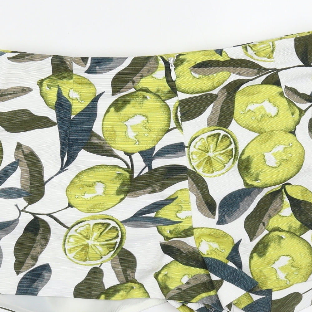 Topshop Womens White Polyester Hot Pants Shorts Size 8 Regular - Fruit print