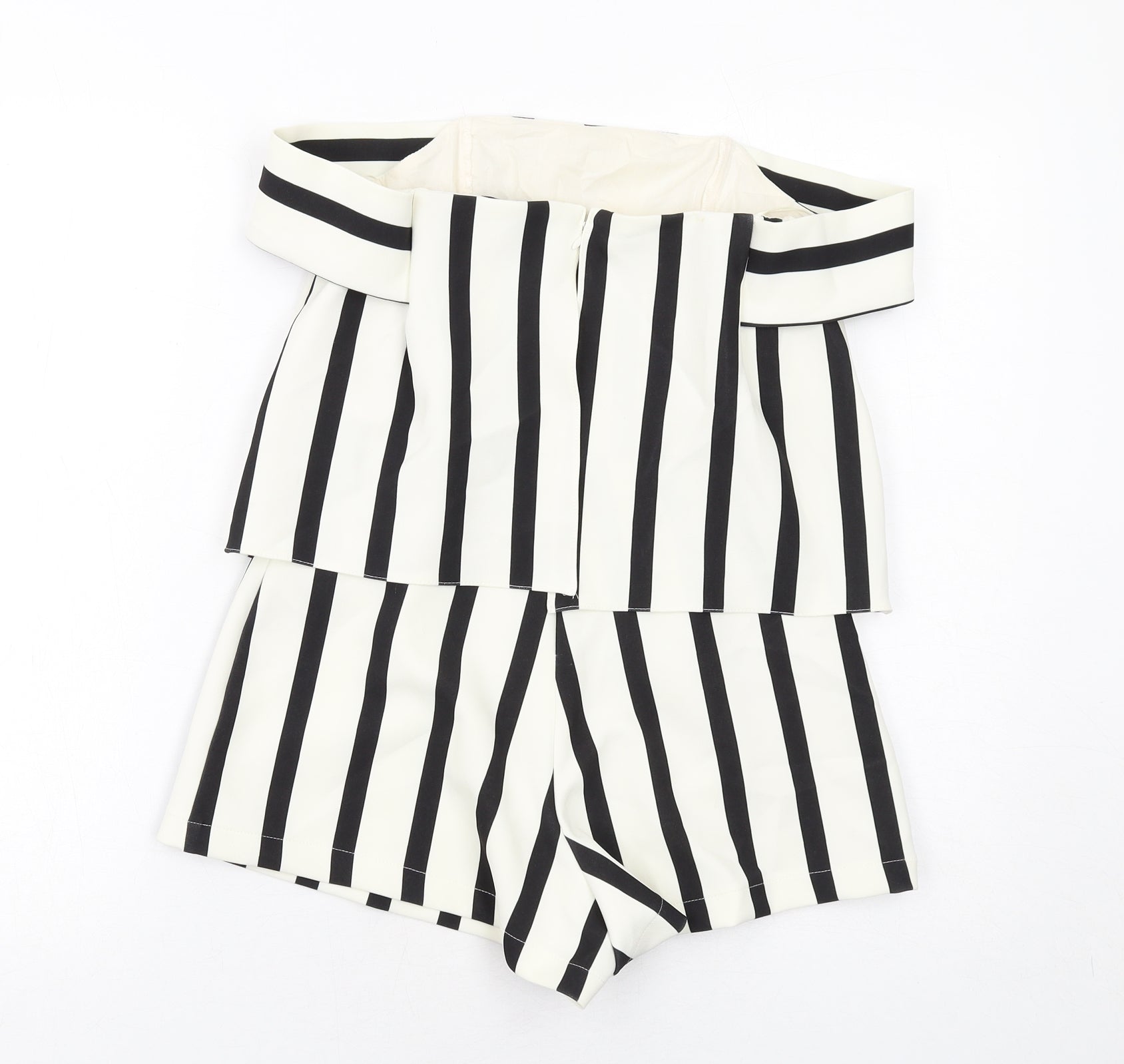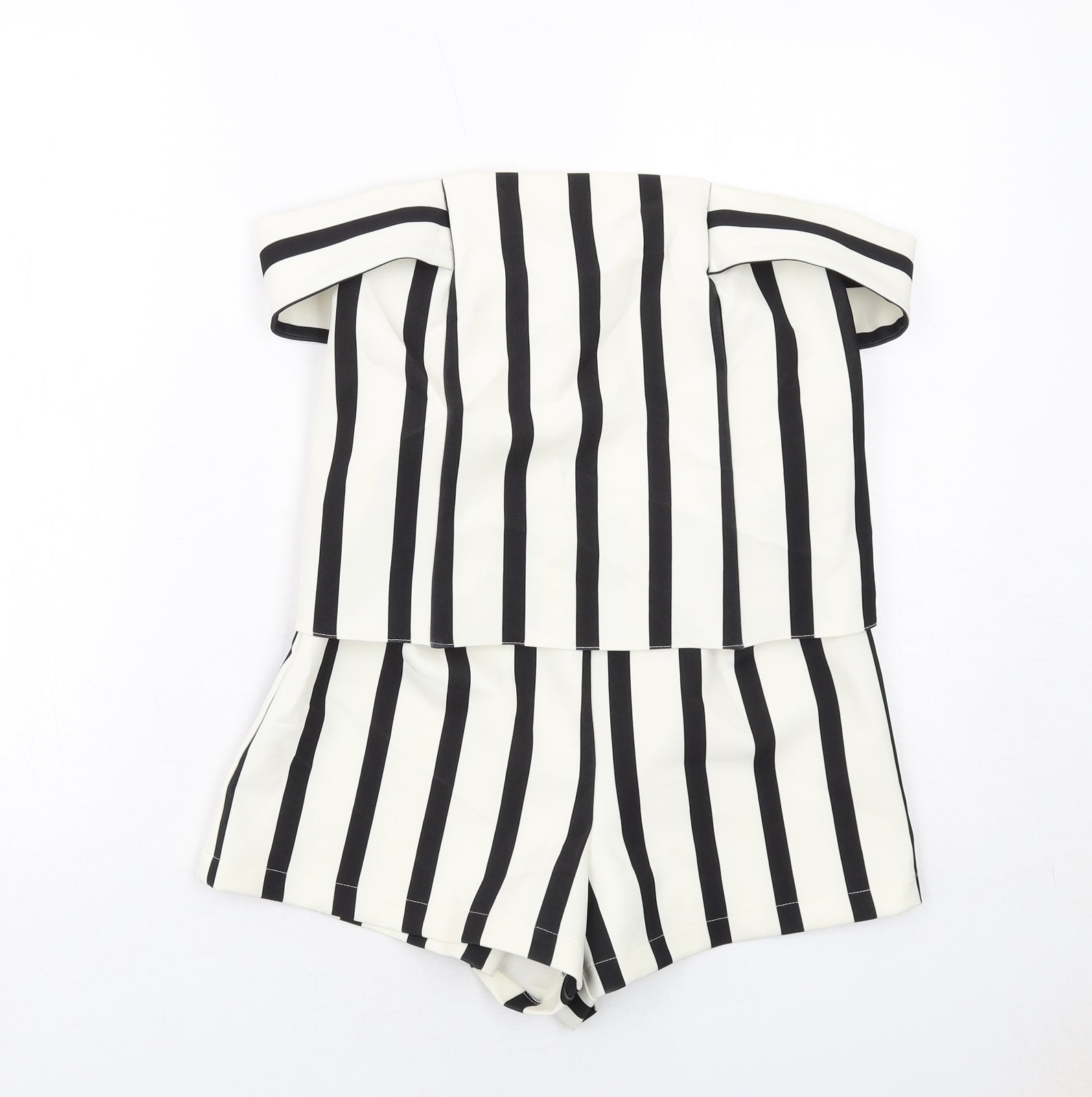 Topshop Womens White Striped Polyester Playsuit One-Piece Size 4 Zip
