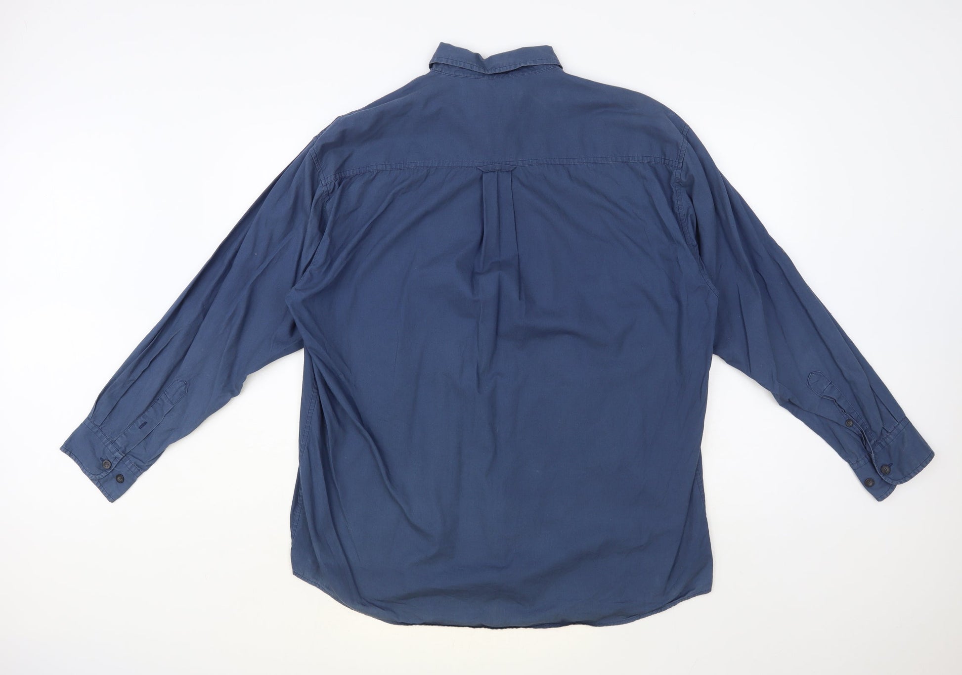 Trademark Mens Blue Cotton Button-Up Size L Collared Button