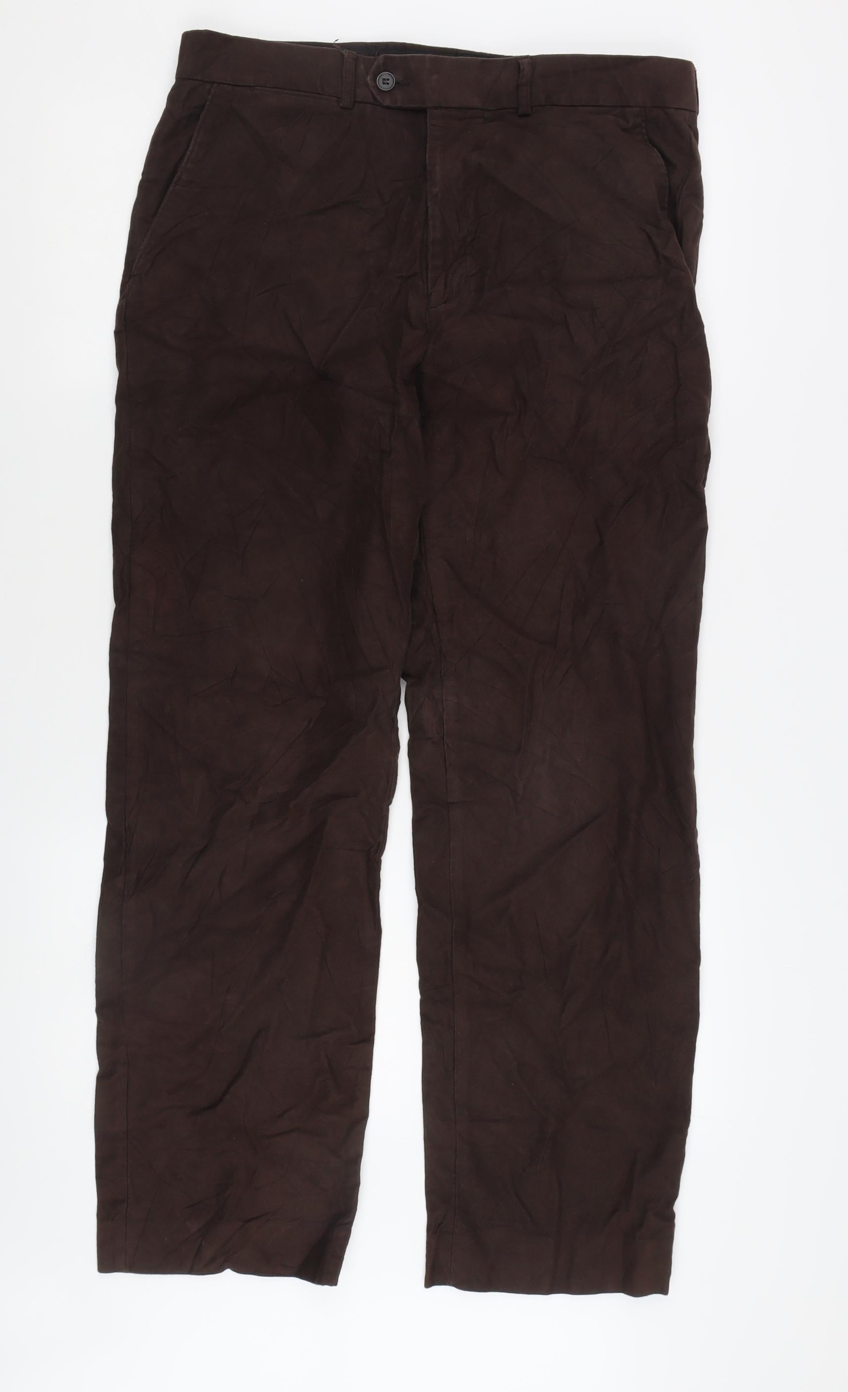 Traders Men's Brown Cotton Trousers Size 34