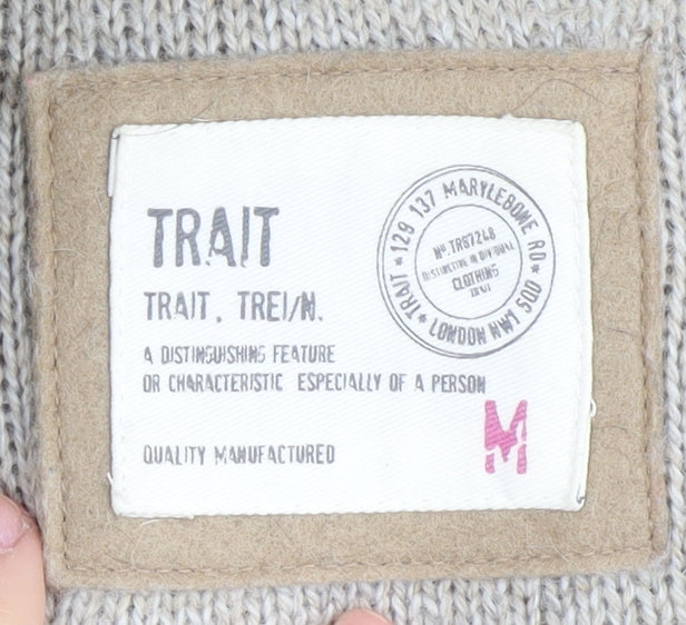 Trait Men's Beige Cable-Knit Henley Jumper Size M